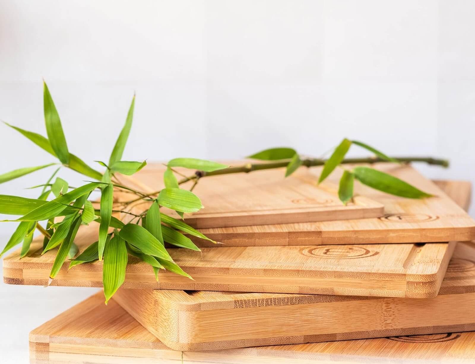 Οι επιφάνειες κοπής είναι κατασκευασμένες από φυσικό ξύλο μπαμπού. Το μπαμπού αναπτύσσεται γρήγορα, δεν απαιτεί λίπασμα και αναγεννάται μόνο του από τις ρίζες του, καθιστώντας το ένα πολύ φιλικό προς το περιβάλλον υλικό. Χωρίς πρόσθετες χημικές ουσίες, οι σανίδες μπαμπού μας είναι απολύτως ασφαλείς για χρήση για την προετοιμασία και την παρουσίαση τροφίμων.