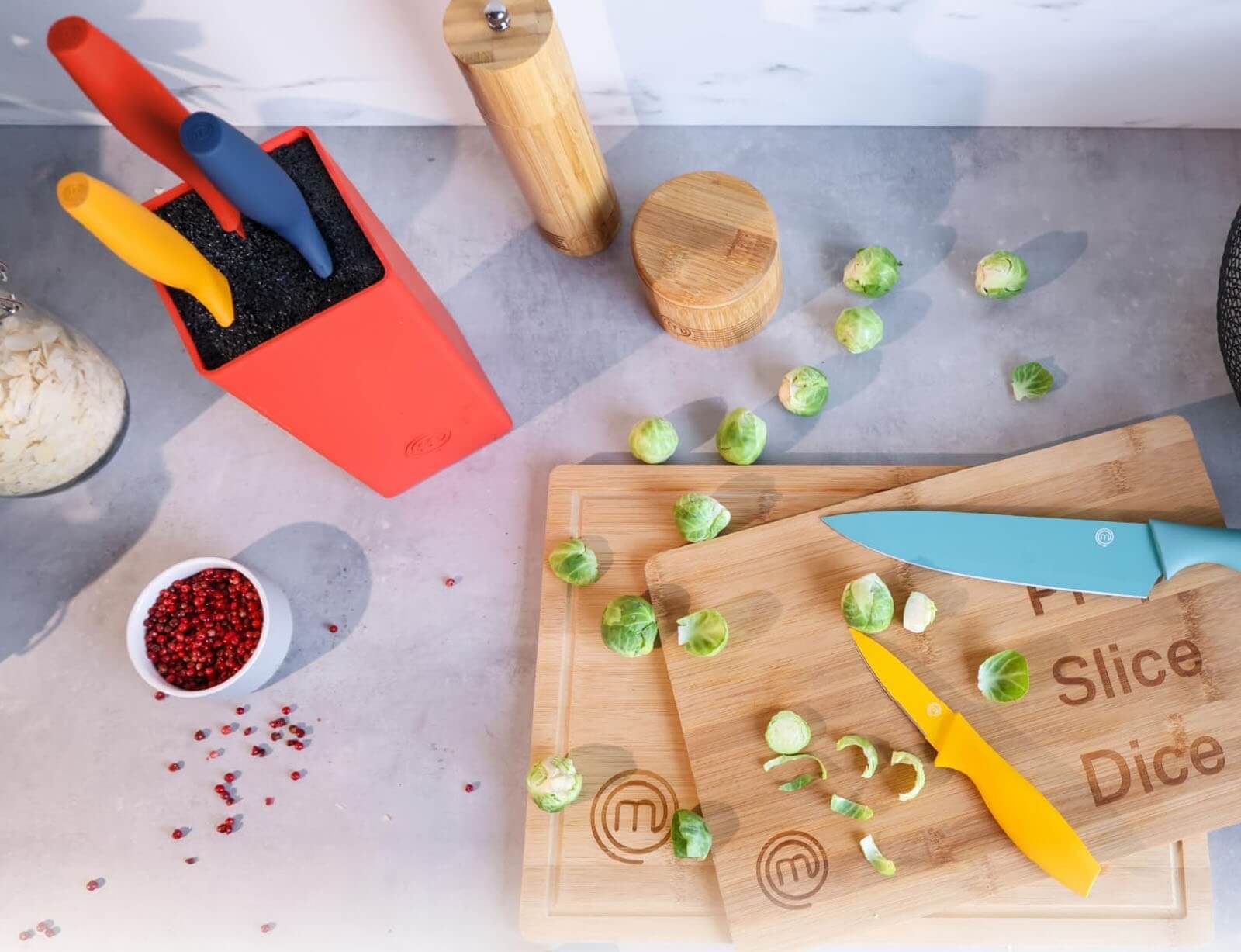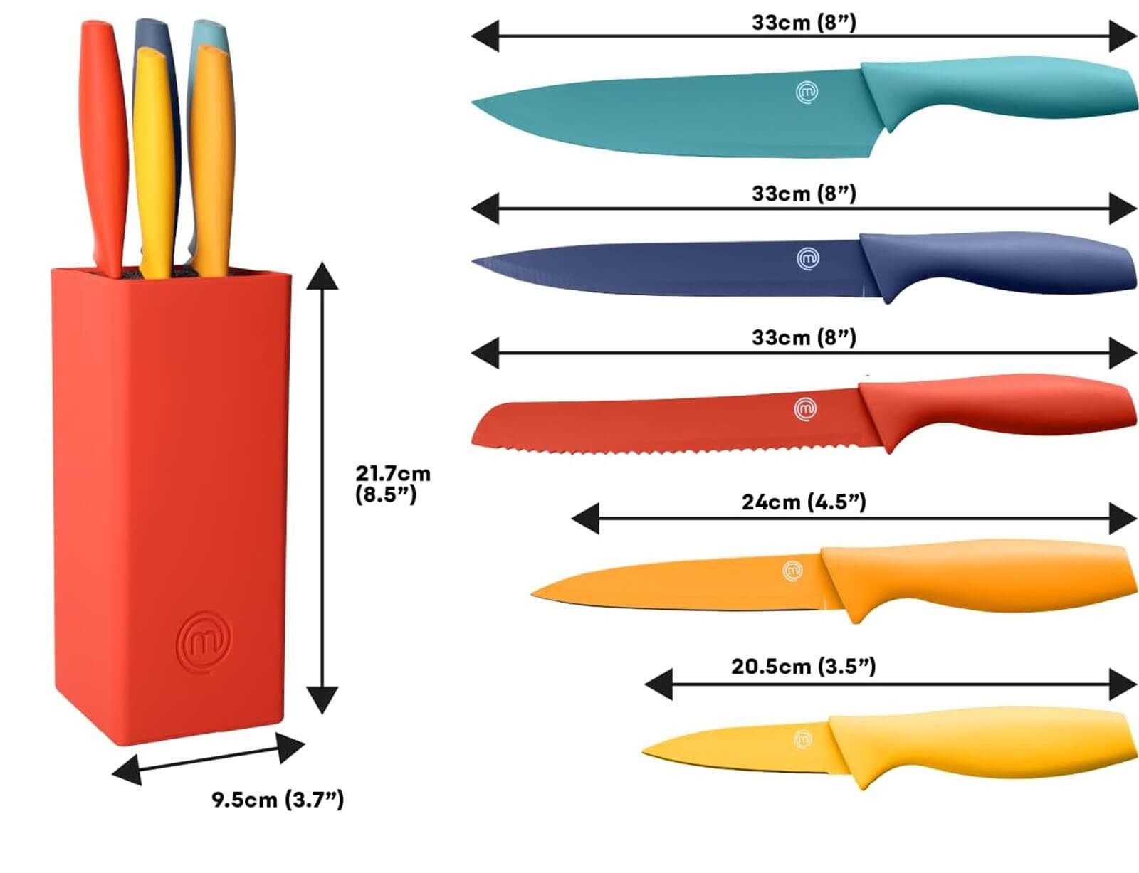 Αυτό το σετ επαγγελματικών μαχαιριών κουζίνας 5 τεμαχίων με μπλοκ μαχαιριού είναι επίσημο προϊόν της τηλεοπτικής σειράς MasterChef, που αναπτύχθηκε στο Ηνωμένο Βασίλειο.
