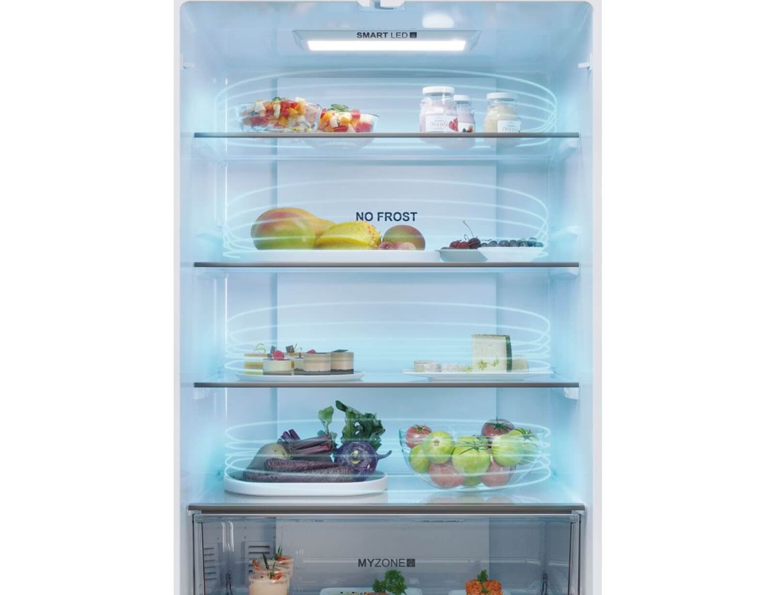 Με το Haier Air Surround Fresher Tech, ο αέρας ρέει γύρω από το ψυγείο με πιο απαλό και απαλό τρόπο. Χάρη στις ειδικές πλευρικές εξόδους, από όπου εξαπλώνεται ο αέρας, αυτό το σύστημα κατανέμει ομοιογενώς τον κρύο αέρα αγκαλιάζοντας τα τρόφιμα σε ολόκληρη την κοιλότητα του ψυγείου, αποφεύγοντας έτσι την άμεση ροή στα τρόφιμα και χωρίς να προκαλεί απώλεια βάρους και ξήρανση των τροφίμων. Αυτός είναι ο λόγος για τον οποίο το Haier Air Surround διατηρεί τη γεύση, τη συνοχή και τη χυμότητα του φαγητού έως και 99%* μετά από 7 ημέρες όπως η Ημέρα 1.