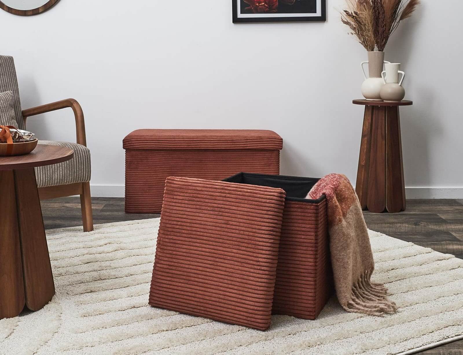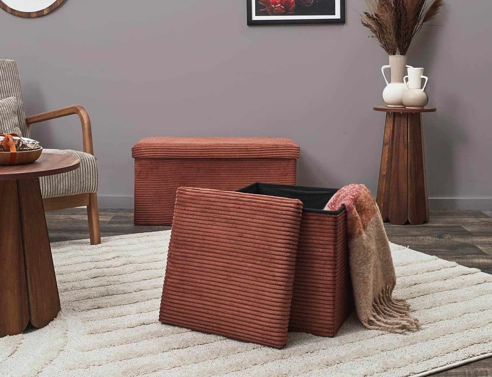 Αναβαθμίστε το χώρο σας με το σκαμπό Scott από τη Home Deco Factory, που συνδυάζει λειτουργικότητα και αισθητική. Διαθέτει αποθηκευτικό χώρο, όπου μπορείτε να τοποθετήσετε διάφορα αντικείμενα. Παράλληλα, μπορεί να σας χρησιμεύσει και ως επιπλέον κάθισμα. Η σύγχρονη σχεδίαση με ραβδωτό μοτίβο και η κεραμιδί απόχρωση του θα δώσουν μια μοντέρνα πινελιά στη διακόσμησή σας. Είναι αναδιπλούμενο, ώστε να το αποθηκεύετε χωρίς να πιάνει πολύ χώρο εάν δεν το χρειάζεστε.
