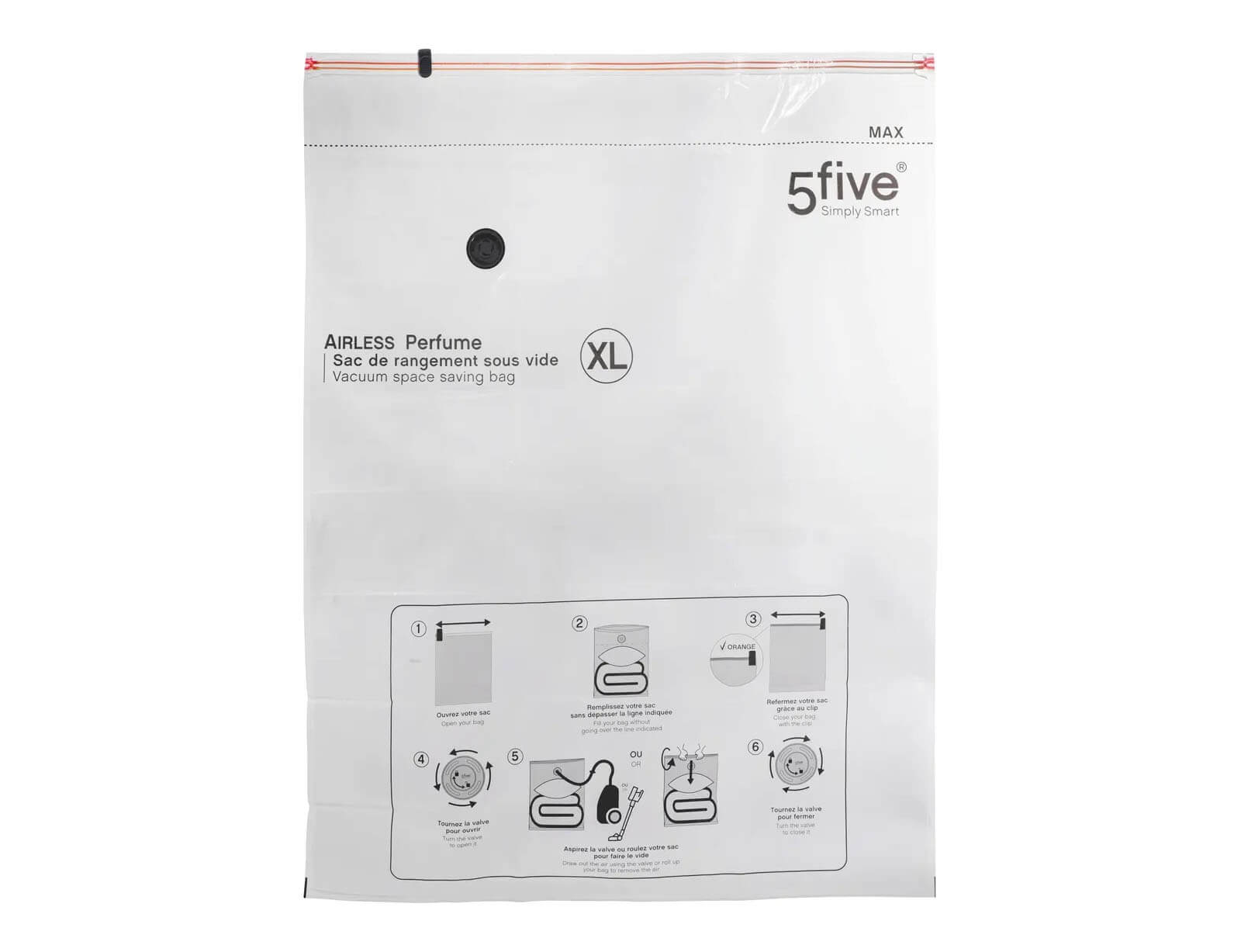Τακτοποιήστε και οργανώστε το σπίτι σας με τη σακούλα αποθήκευσης κενού αέρος από τη 5five. Η σακούλα συρρίκνωσης κενού αέρος θα μειώσει τον όγκο των ρούχων που θέλετε να αποθηκεύσετε και θα σας προσφέρει όχι μόνο εξοικονόμηση χώρου αλλά και απόλυτη προστασία των ρούχων σας. Είναι αεροστεγής, προστατεύει από σκόνη, υγρασία, μυρωδιές, ακάρεα και σκόρο. Ανοίξτε το καπάκι της βαλβίδας, ενεργοποιήστε την ηλεκτρική σκούπα για να απορροφήσει όλο τον αέρα.