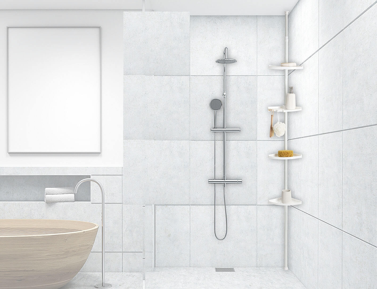 Η γωνιακή ραφιέρα διαθέτει 4 ράφια αποθήκευσης στα οποία μπορείτε να τοποθετήσετε τα προϊόντα της προσωπικής σας περιποίησης, ώστε να έχετε πάντα ένα οργανωμένο και τακτοποιημένο μπάνιο. Αυτός ο τρόπος τοποθέτησης είναι πολύ χρήσιμος, καθώς θα εξοικονομήσει χώρο στο μπάνιο σας. Κατασκευάζεται από μέταλλο και είναι κατάλληλη για μπάνιο με υψηλότερη από το συνηθισμένο υγρασία. Είναι ανθεκτικό, ενώ παράλληλα καθαρίζεται εύκολα και απαιτεί ελάχιστη συντήρηση.