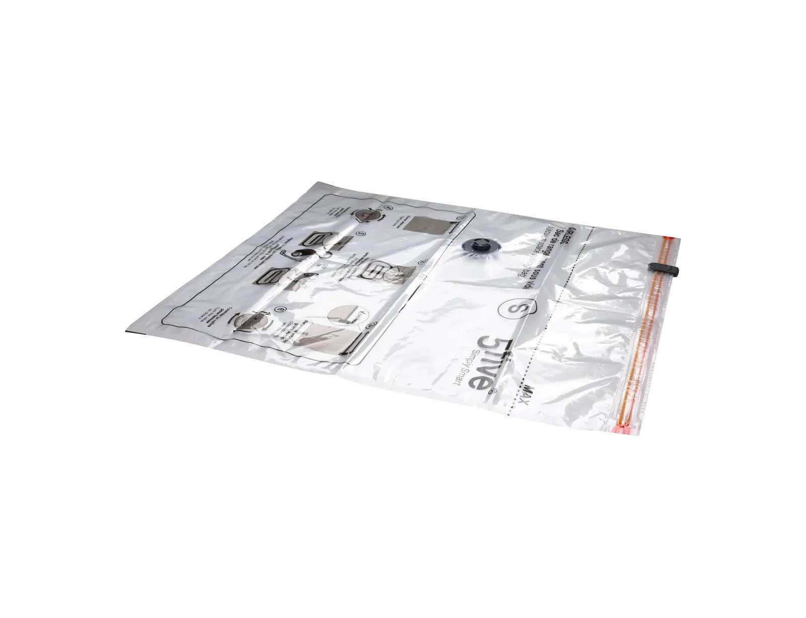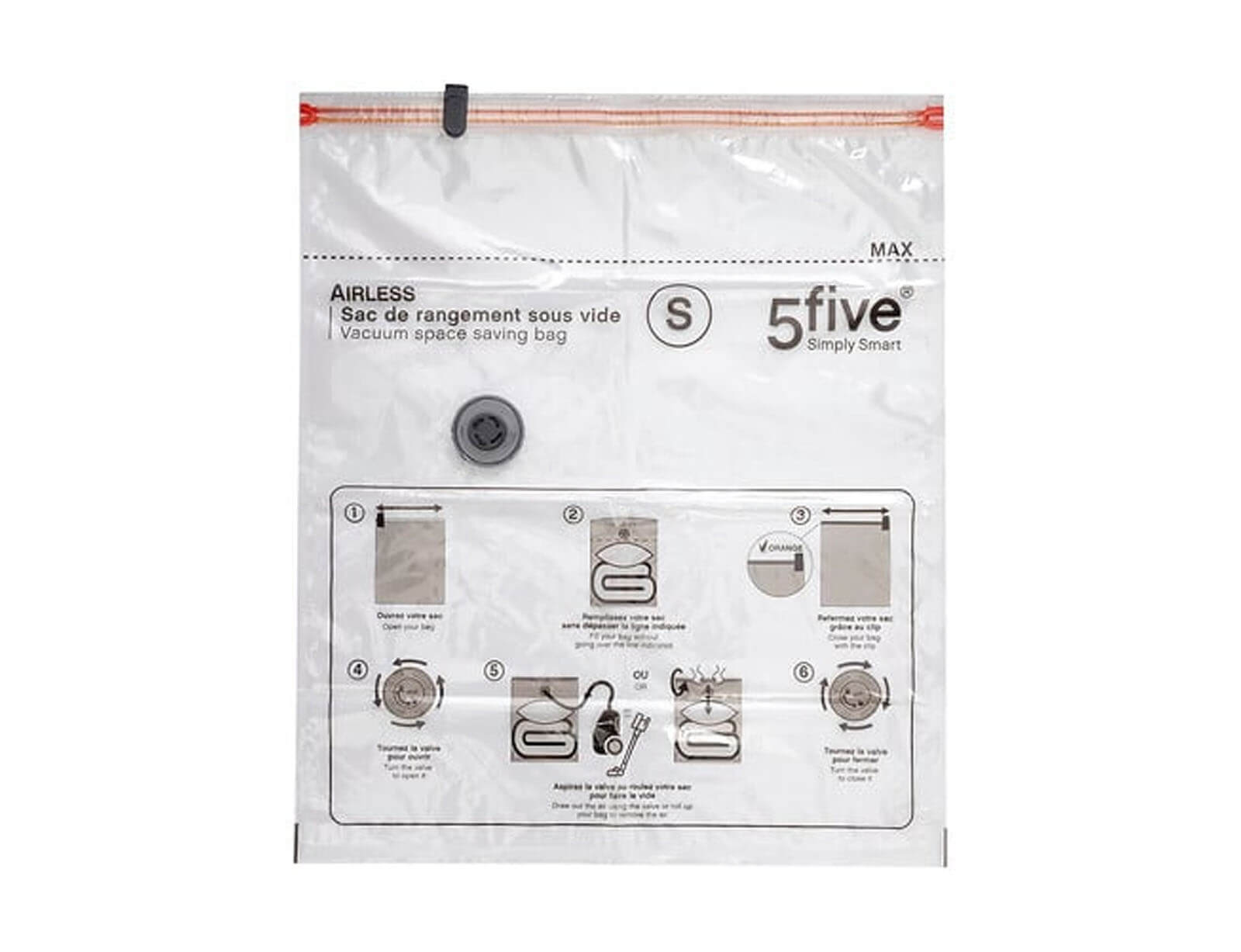 Τακτοποιήστε και οργανώστε το σπίτι σας με τη σακούλα αποθήκευσης κενού αέρος από τη 5five. Η σακούλα συρρίκνωσης κενού αέρος θα μειώσει τον όγκο των ρούχων που θέλετε να αποθηκεύσετε και θα σας προσφέρει όχι μόνο εξοικονόμηση χώρου αλλά και απόλυτη προστασία των ρούχων σας. Είναι αεροστεγής, προστατεύει από σκόνη, υγρασία, μυρωδιές, ακάρεα και σκόρο. Ανοίξτε το καπάκι της βαλβίδας, ενεργοποιήστε την ηλεκτρική σκούπα για να απορροφήσει όλο τον αέρα.