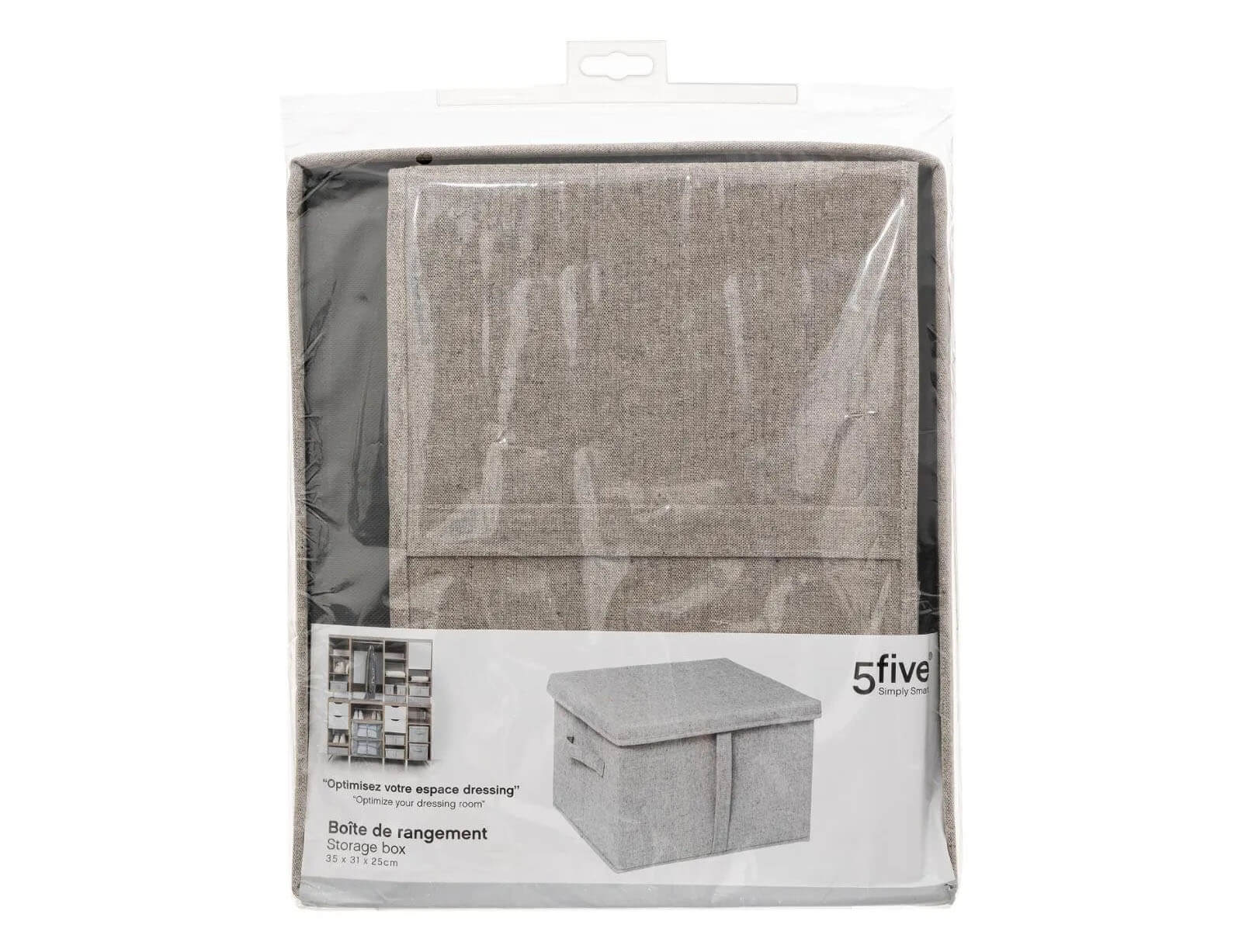 Υφασμάτινο κουτί αποθήκευσης της εταιρείας 5Five με καπάκι, για την προστασία των αντικειμένων σας, το οποίο αποτελεί μία πρακτική λύση για την αποθήκευση ρούχων, προϊόντα περιποίησης προσώπου ή σώματος καθώς και οτιδήποτε άλλο χρειάζεται αποθήκευση αλλά και άμεση πρόσβαση σε εσάς. Επίσης, μπορεί να προσαρμοστεί εύκολα σε κάθε δωμάτιο ανάλογα με τις ανάγκες σας.