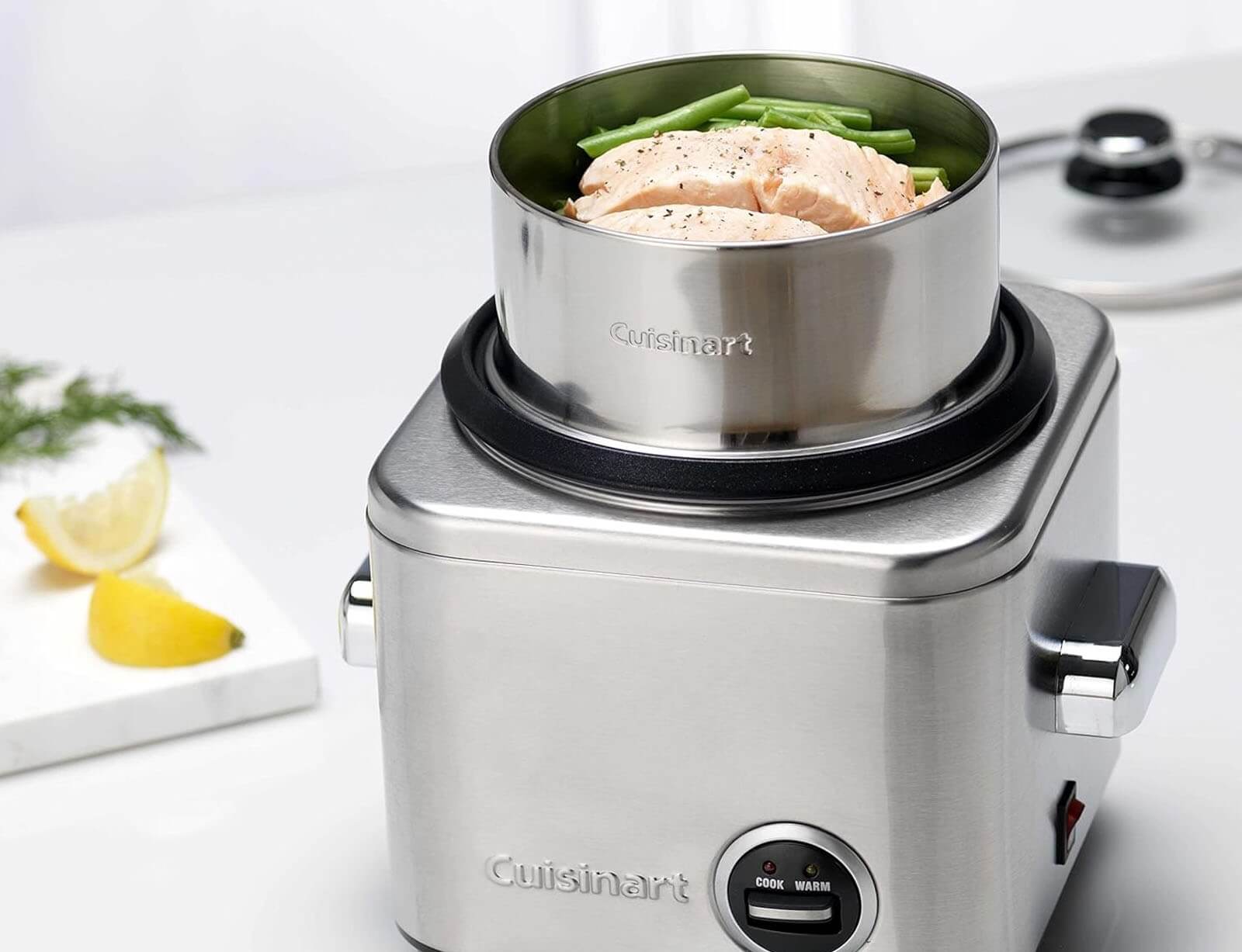Με τον ατμομάγειρα της Cuisinart, το μαγείρεμα αφράτου γευστικού ρυζιού γίνεται παιχνιδάκι. Απλώς προσθέστε νερό και η συσκευή κάνει τα υπόλοιπα. Θα έχετε μέσα σε λίγα λεπτά τέλειο ρύζι για έως και έξι άτομα και με τη λειτουργία διατήρησης θερμότητας θα το διατηρήσετε ζεστό μετά το μαγείρεμα. Μπορείτε επίσης να χρησιμοποιήσετε το αποσπώμενο καλάθι μαγειρέματος για να μαγειρέψετε κρέας, ψάρι ή λαχανικά στον ατμό ταυτόχρονα, για ένα υγιεινό και απλό γεύμα. Καθαρίζεται και αποθηκεύεται εύκολα χάρη στο μικρό μέγεθος του.