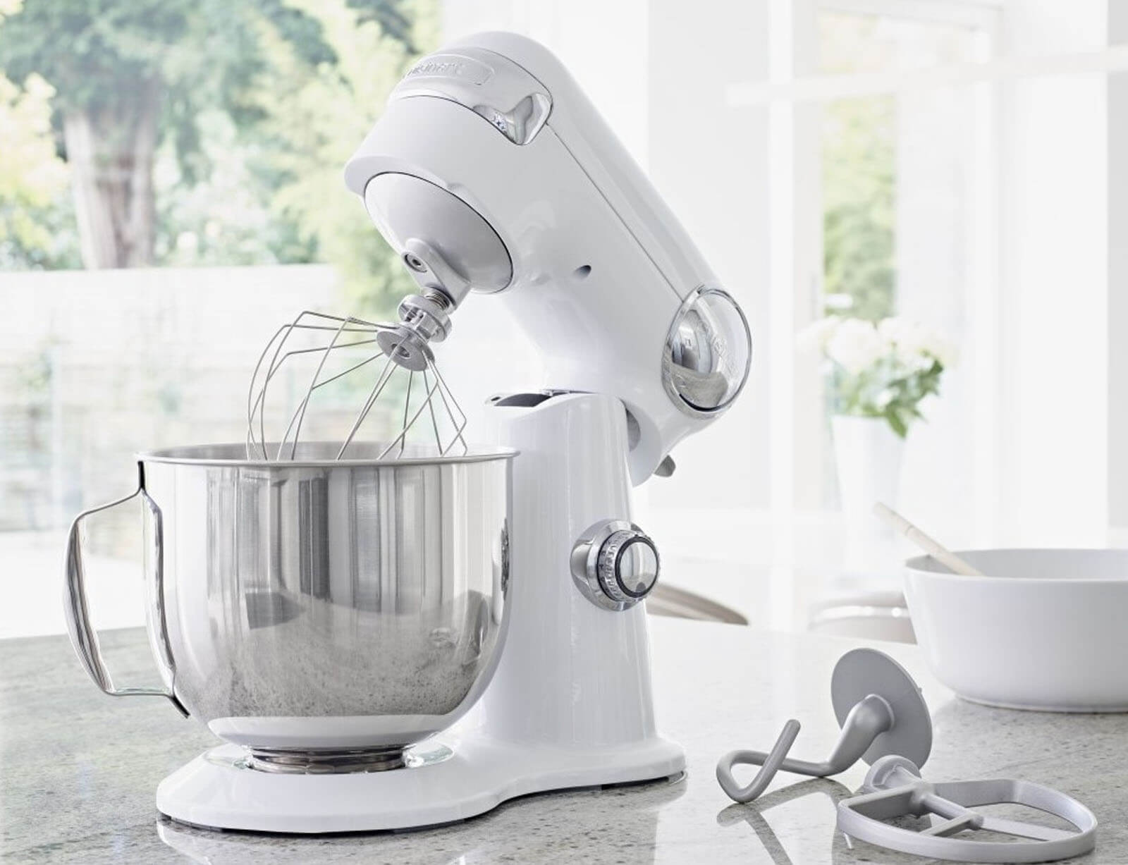 Αφεθείτε στη γαστρονομική σας δημιουργικότητα με την κουζινομηχανή SM50WHE Precision Stand Mixer της Cuisinart. Συνδυάζοντας απλότητα, απόδοση και στυλ, αυτή η κουζινομηχανή θα σας λύσει τα χέρια ζυμώνοντας ζύμη ψωμιού, χτυπώντας ασπράδια αυγών ή αναμειγνύοντας μείγματα κέικ και σάλτσες.