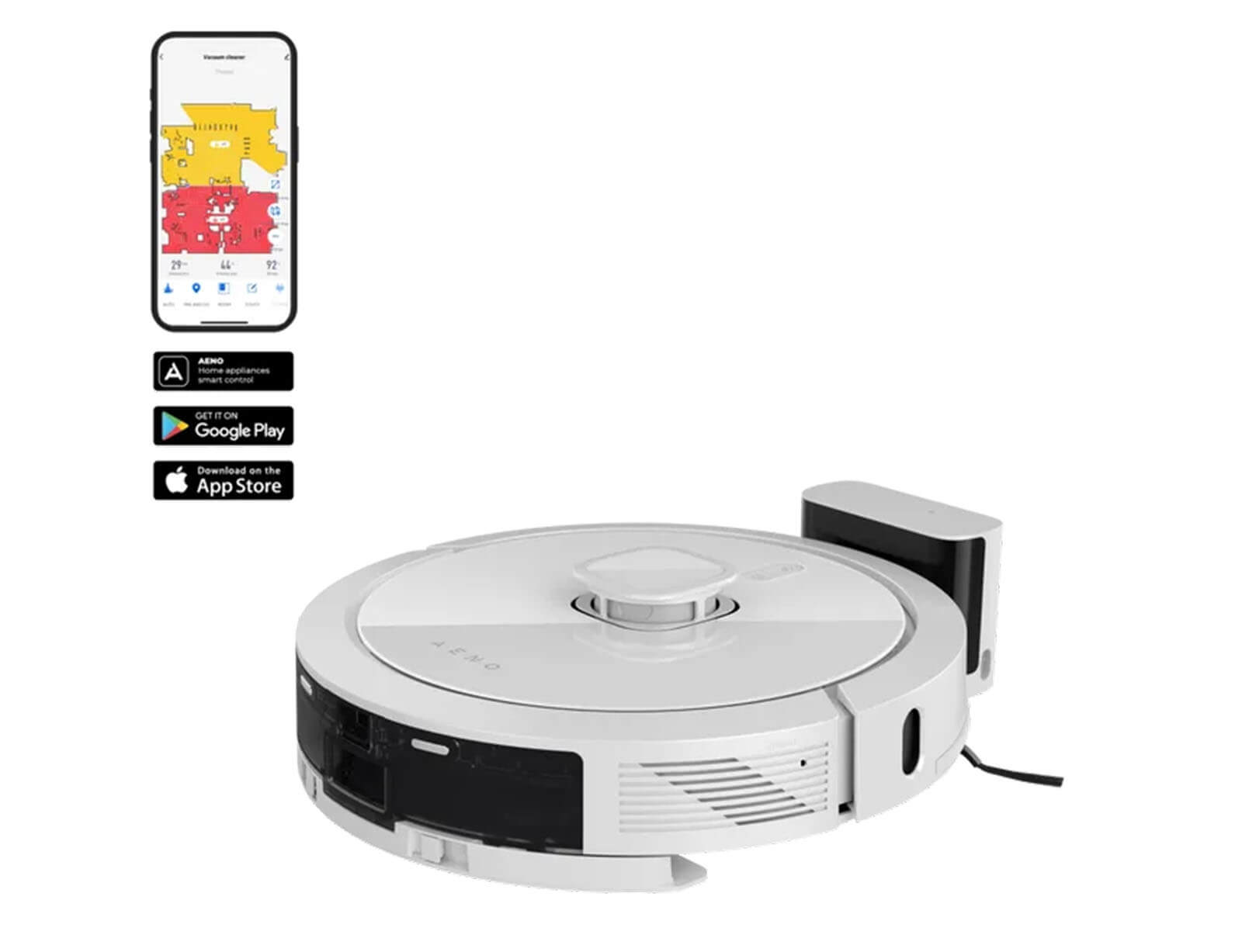 Ελάτε σε ένα καθαρό διαμέρισμα χωρίς σκόνη μετά τη δουλειά ή τις διακοπές. Ορίστε ένα πρόγραμμα καθαρισμού και ελέγξτε την εκτέλεσή του μέσω της φιλικής προς το χρήστη εφαρμογής AENO. Επίσης η εφαρμογή δίνει τη δυνατότητα να ρυθμίσετε τη λειτουργία καθαρισμού, τους εικονικούς τοίχους ή να μάθετε το επίπεδο φόρτισης της μπαταρίας και πολλά άλλα.