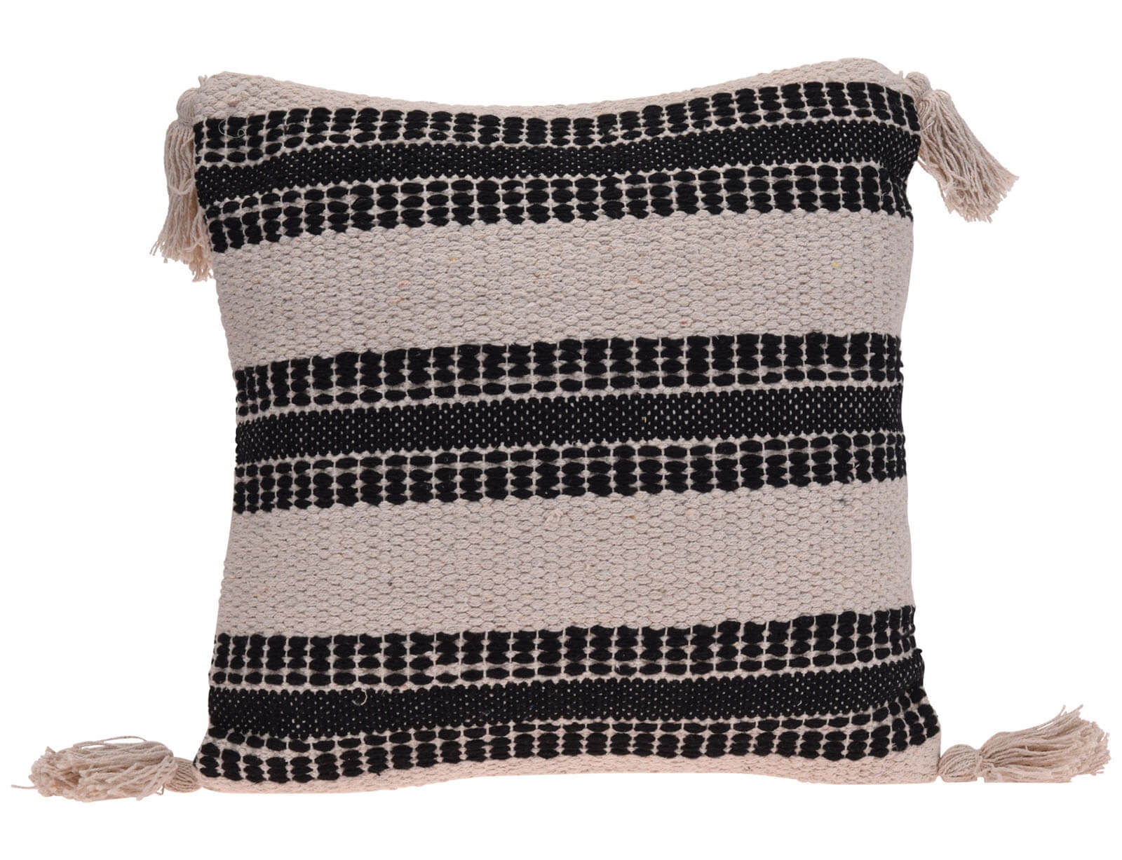 Διακοσμητικό Μαξιλάρι Black Stripe με ανάγλυφο σχέδιο, κρόσσια και διαστάσεις 45x45cm - White/Black
