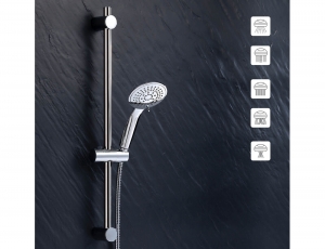Απολαύστε το ντους με ελευθερία κινήσεων και κομψό σχεδιασμό με τη στήλη ντουζ σε μαύρο χρώμα. Το σετ αποτελείται από μια βέργα ντουζ και μια στρογγυλή κεφαλή ντουζ 3 λειτουργιών ροής με σπιράλ. Οι λειτουργίες ρυθμίζονται γυρίζοντας τη διακριτική λαβή που έχει.