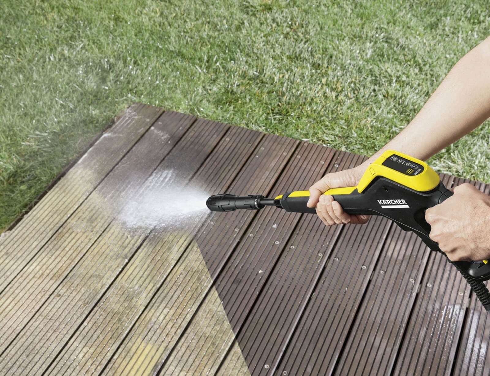 Πιστόλι ψεκασμού με οθόνη LCD και κουμπιά για ρύθμιση της πίεσης ή της δόσης του καθαριστικού. Πλήρης έλεγχος: Οι ρυθμίσεις που γίνονται εμφανίζονται στην οθόνη. Προσαρμογέας Quick Connect για εύκολη στερέωση του λάστιχου υψηλής πίεσης και των εξαρτημάτων.