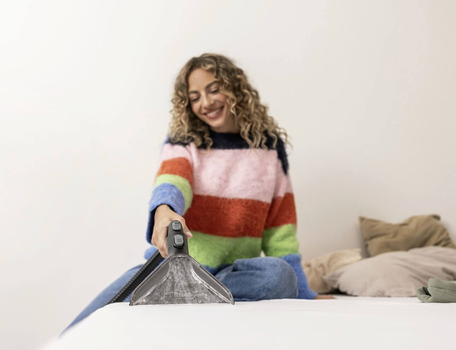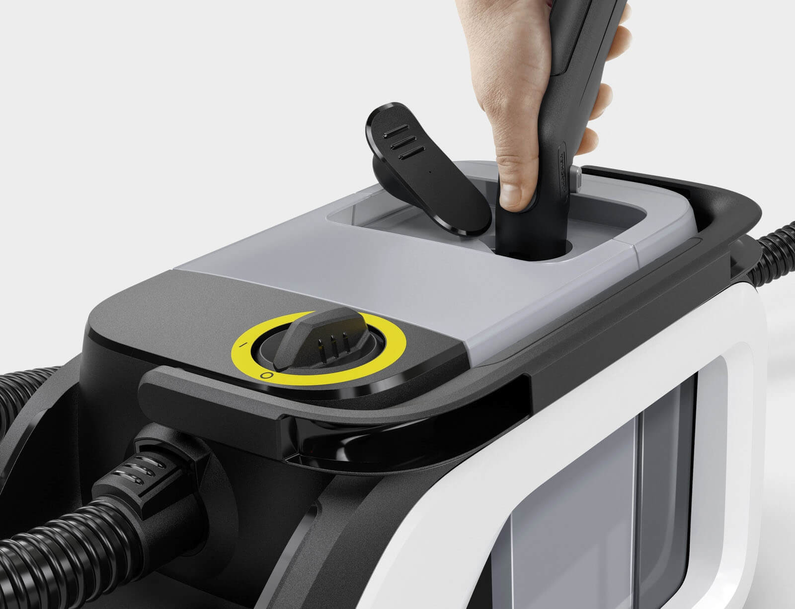 Καθαρισμός βαθιά μέσα στις ίνες των υφασμάτινων επιφανειών. Χαμηλή υπολειμματική υγρασία για γρήγορο στέγνωμα των υφασμάτινων επιφανειών. Αβίαστος και γρήγορος καθαρισμός χάρη στην αποτελεσματική μέθοδο καθαρισμού με ψεκασμό αναρρόφηση σε συνδυασμό με ένα ισχυρό αλλά και ενεργειακά αποδοτικό μοτέρ.