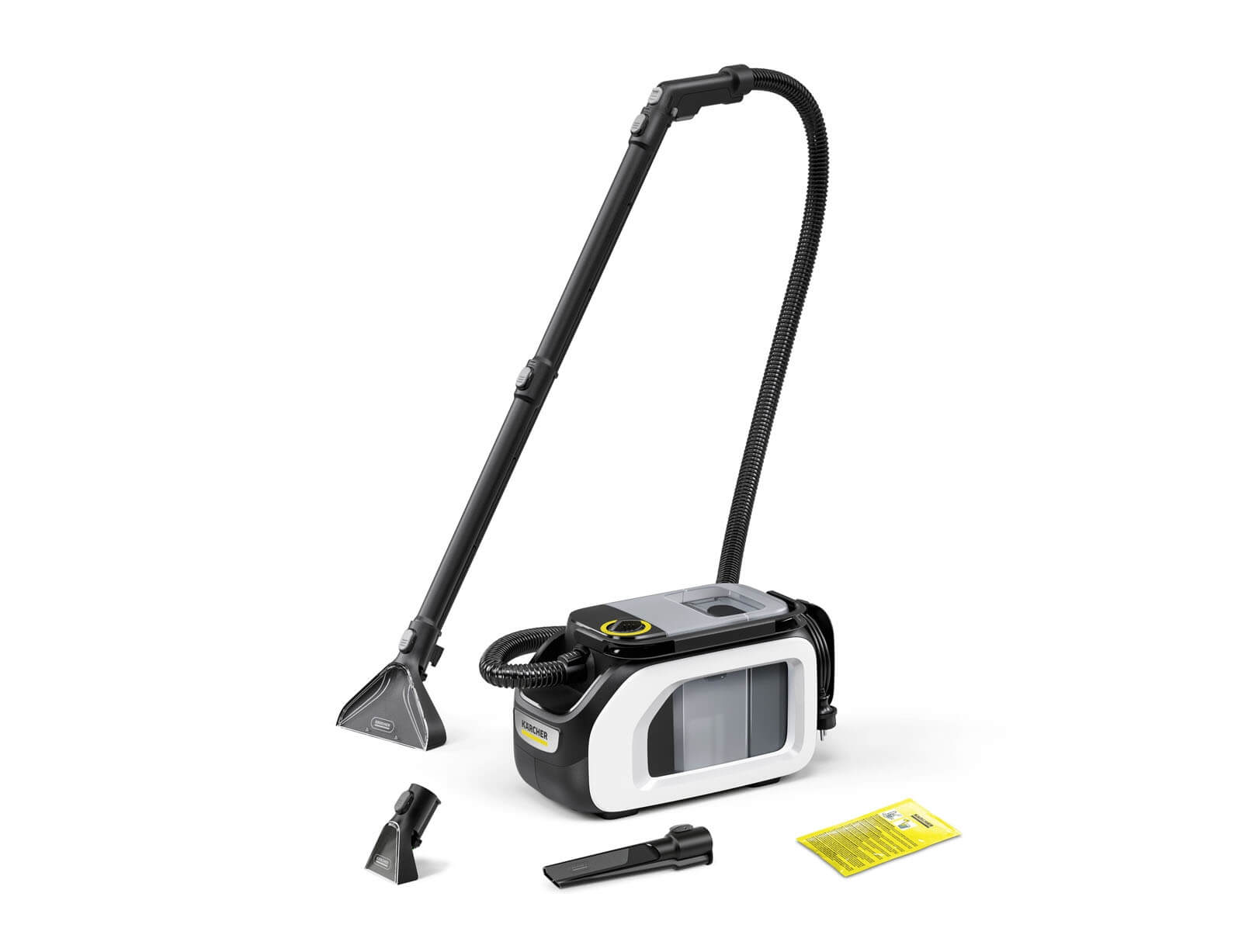 Βαθύς καθαρισμός μέχρι τις ίνες και συμπαγής σχεδιασμός: το μηχάνημα ψεκασμού αναρρόφησης SE 3 Compact Home Floor είναι μια ισχυρή και ενεργειακά αποδοτική λύση για τον καθαρισμό υφασμάτινων επιφανειών. Χάρη στον συμπαγή σχεδιασμό της, η συσκευή μπορεί να αποθηκευτεί για εξοικονόμηση χώρου, εξασφαλίζοντας ότι θα είναι γρήγορα έτοιμη όποτε χρειάζεται για ενδελεχή και βολικό καθαρισμό σε βάθος των ινών. Οι ρύποι απομακρύνονται γρήγορα και αποτελεσματικά από τα επικαλυμμένα έπιπλα και τα χαλιά. Ο εύκαμπτος σωλήνας αναρρόφησης και το μακρύ καλώδιο εγγυώνται υψηλό επίπεδο άνεσης, ευελιξίας και ελευθερίας κινήσεων. Το πρωτοποριακό ακροφύσιο αναρρόφησης ψεκασμού 2 σε 1 XXL, σε συνδυασμό με τους σωλήνες προέκτασης, επιτρέπει τον άνετο καθαρισμό χαλιών μεσαίου μεγέθους. Χρησιμοποιώντας την ίδια τη λαβή, το ακροφύσιο μπορεί να καθαρίσει μεγαλύτερες ταπετσαρίες επίπλων δύο φορές πιο γρήγορα από ένα συμβατικό ακροφύσιο ψεκασμού αναρρόφησης για ταπετσαρίες. Με τις πρακτικές επιλογές αποθήκευσης στη συσκευή, όλα τα εξαρτήματα είναι πάντα διαθέσιμα. Το σύστημα δεξαμενής 2 σε 1 εξασφαλίζει ότι οι χρήστες δεν χρειάζεται να έρχονται σε επαφή με ρύπους. Και μόλις ολοκληρωθεί ο καθαρισμός, το μηχάνημα ψεκασμού αναρρόφησης εντυπωσιάζει ακόμη περισσότερο με τη λειτουργία καθαρισμού του συστήματος για την αποφυγή σχηματισμού βακτηρίων και οσμών. Περιλαμβάνει ακροφύσιο ψεκασμού αναρρόφησης για ταπετσαρίες, ακροφύσιο ψεκασμού αναρρόφησης για σχισμές και χημικό καθαριστικό.
