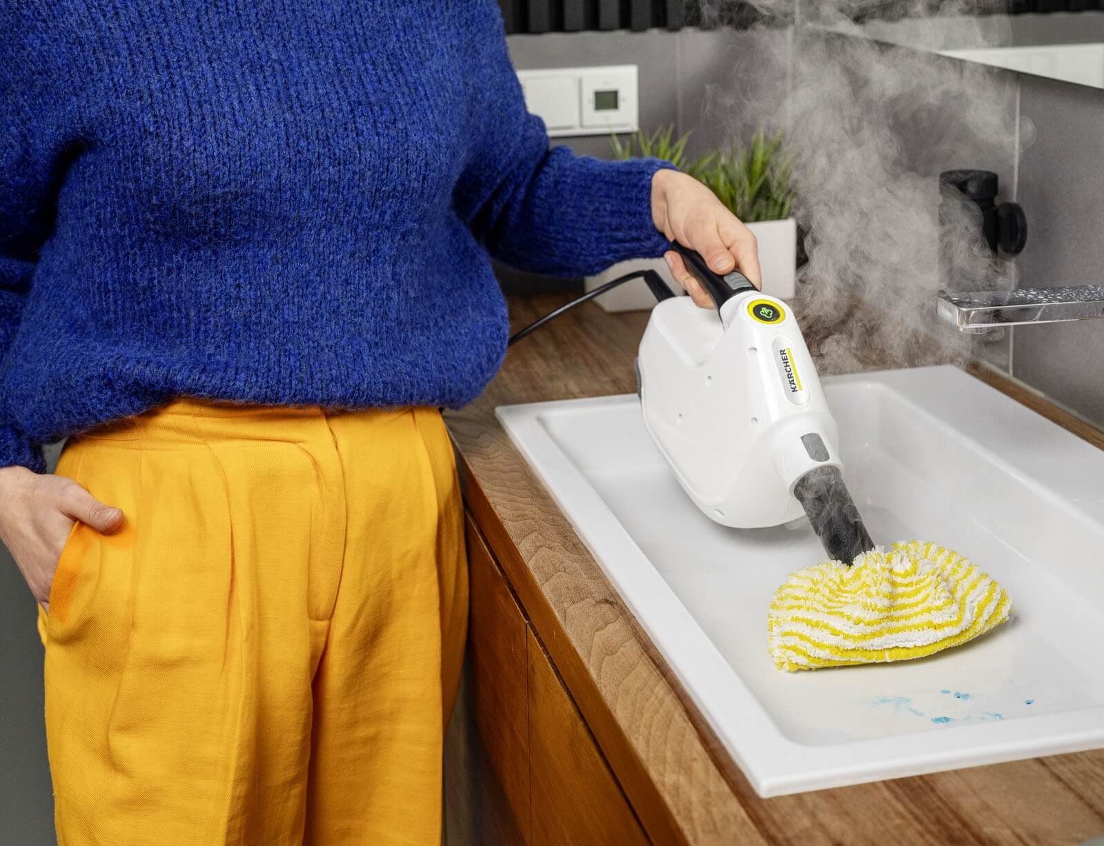 Ο συμπαγής ατμοκαθαριστής χειρός SC 1 Multi καθαρίζει χωρίς χημικά και είναι έτοιμος για βαθύ καθαρισμό σε χρόνο μηδέν. Ο καθαρισμός αφαιρεί έως και 99,999% των ιών και 99,99% όλων των κοινών οικιακών βακτηρίων από σκληρές επιφάνειες. Ο συμπαγής και πρακτικός σχεδιασμός της συσκευής την καθιστά άνετη στη χρήση και εύκολη στην αποθήκευση ακόμη και στους μικρότερους χώρους. Το SC 1 Multi είναι έτοιμο για χρήση σε 30 δευτερόλεπτα και είναι εύκολο στην αναπλήρωση χάρη στην αφαιρούμενη δεξαμενή νερού - για μεγαλύτερα διαστήματα συντήρησης και λιγότερες διακοπές. Η αντικαταστάσιμη κασέτα αφαλάτωσης εξασφαλίζει αυτόματη αφαλάτωση για πενταπλάσια διάρκεια ζωής του προϊόντος. Η οθόνη LED με πίνακα ελέγχου επιτρέπει απλή και εύκολη λειτουργία. Οι διάφορες λειτουργίες, όπως η θέρμανση, η ετοιμότητα προς χρήση, η λειτουργία ατμού και η αλλαγή κασέτας, εμφανίζονται πάντα στην οθόνη. Υπάρχει επίσης η δυνατότητα επέκτασης στην καινοτόμο σφουγγαρίστρα ατμού 4 σε 1.