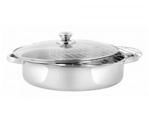 Ανοξείδωτο στρογγυλό βαθύ ταψί Βιομάρ 830034 με διάμετρο 34cm, χερούλια, καπάκι και ανοξείδωτη σχάρα