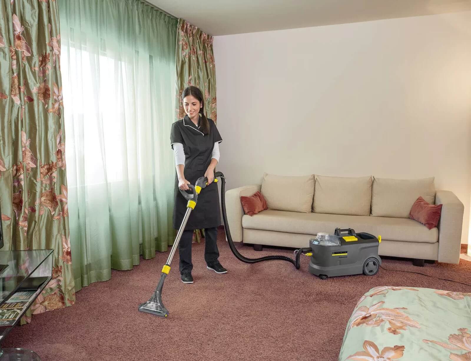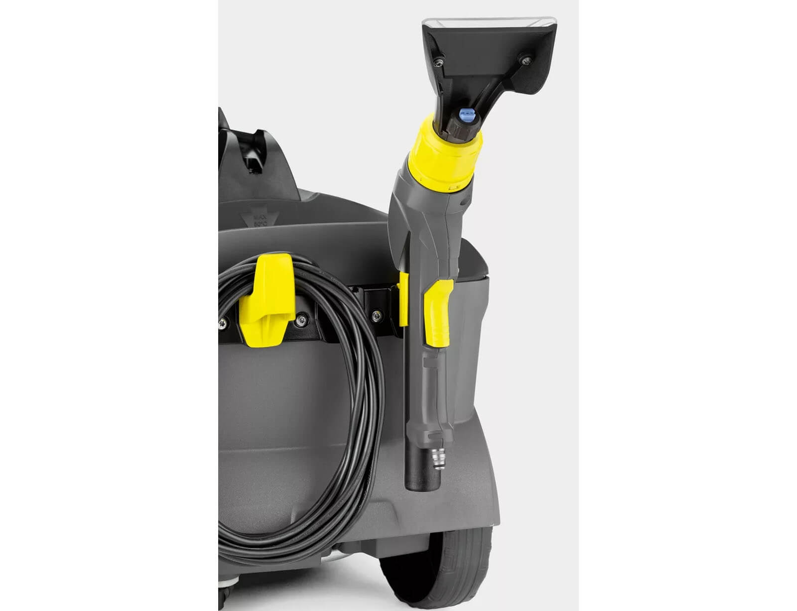 Η Puzzi 10/1 με ακροφύσιο για ταπετσαρίες και ακροφύσιο δαπέδου είναι κατάλληλη για τον υγιεινό και αποτελεσματικό καθαρισμό μικρών - μεσαίων επιφανειών. Με πίεση ψεκασμού 1 bar η μηχανή ψεκασμού αναρρόφησης εξασφαλίζει ήπιο, βαθύ καθαρισμό των υφασμάτινων επιφανειών. Χάρη στο στενό ακροφύσιο δαπέδου, το μηχάνημα είναι ιδανικά κατάλληλο για χρήση σε περιορισμένους χώρους. Χάρη στην ελαστική άκρη του ακροφυσίου ακόμα και οι άνισες επιφάνειες καθαρίζονται εύκολα. Η μηχανή ψεκασμού-αναρρόφησης διαθέτει ενσωματωμένο γάντζο καλωδίου και στήριξη για το σωλήνα αναρρόφησης.