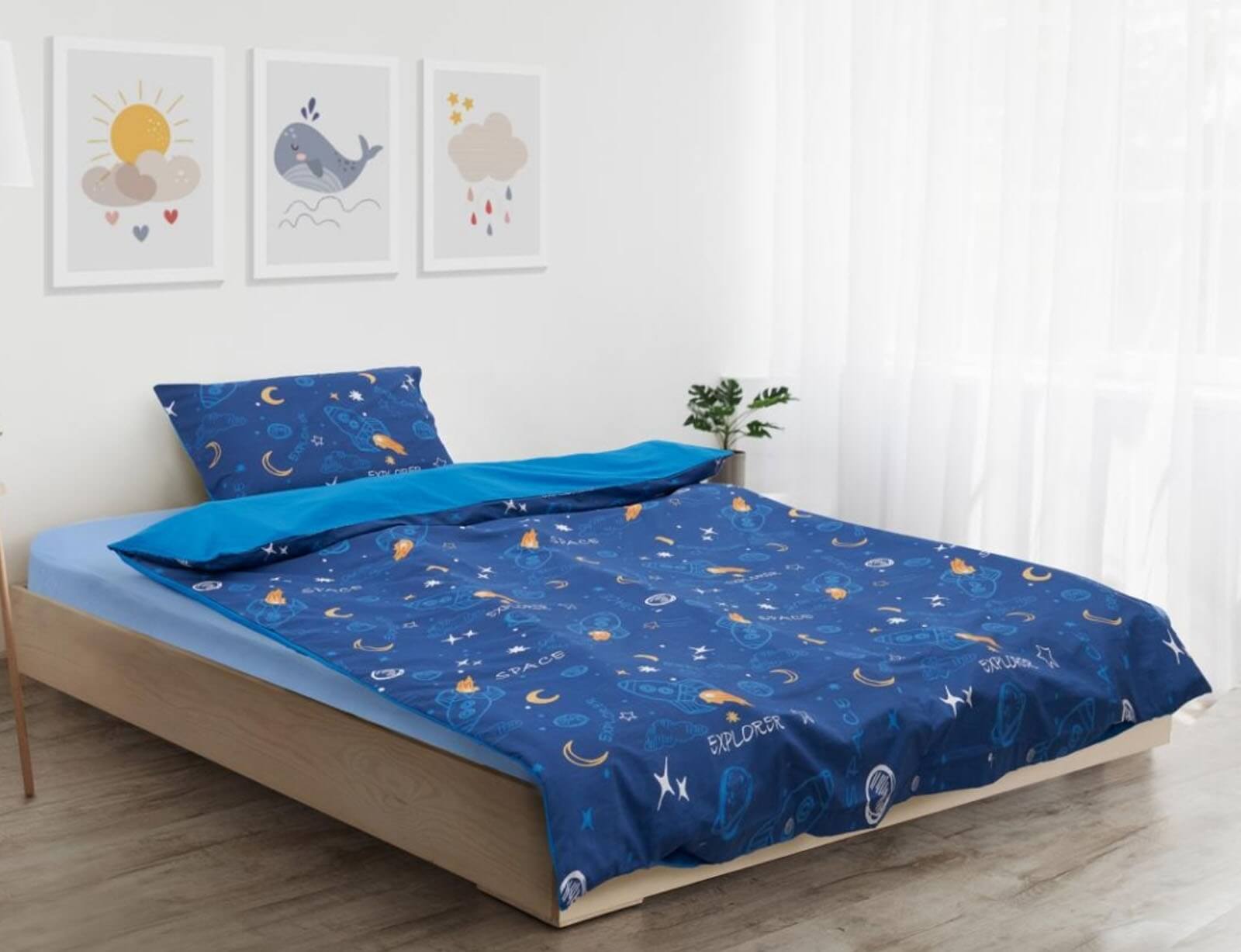 Σετ Μονή Παπλωματοθήκη & Μαξιλαροθήκη Space Heinner Home από βαμβάκι 144TC, με διαστάσεις 150x200cm - Μπλε