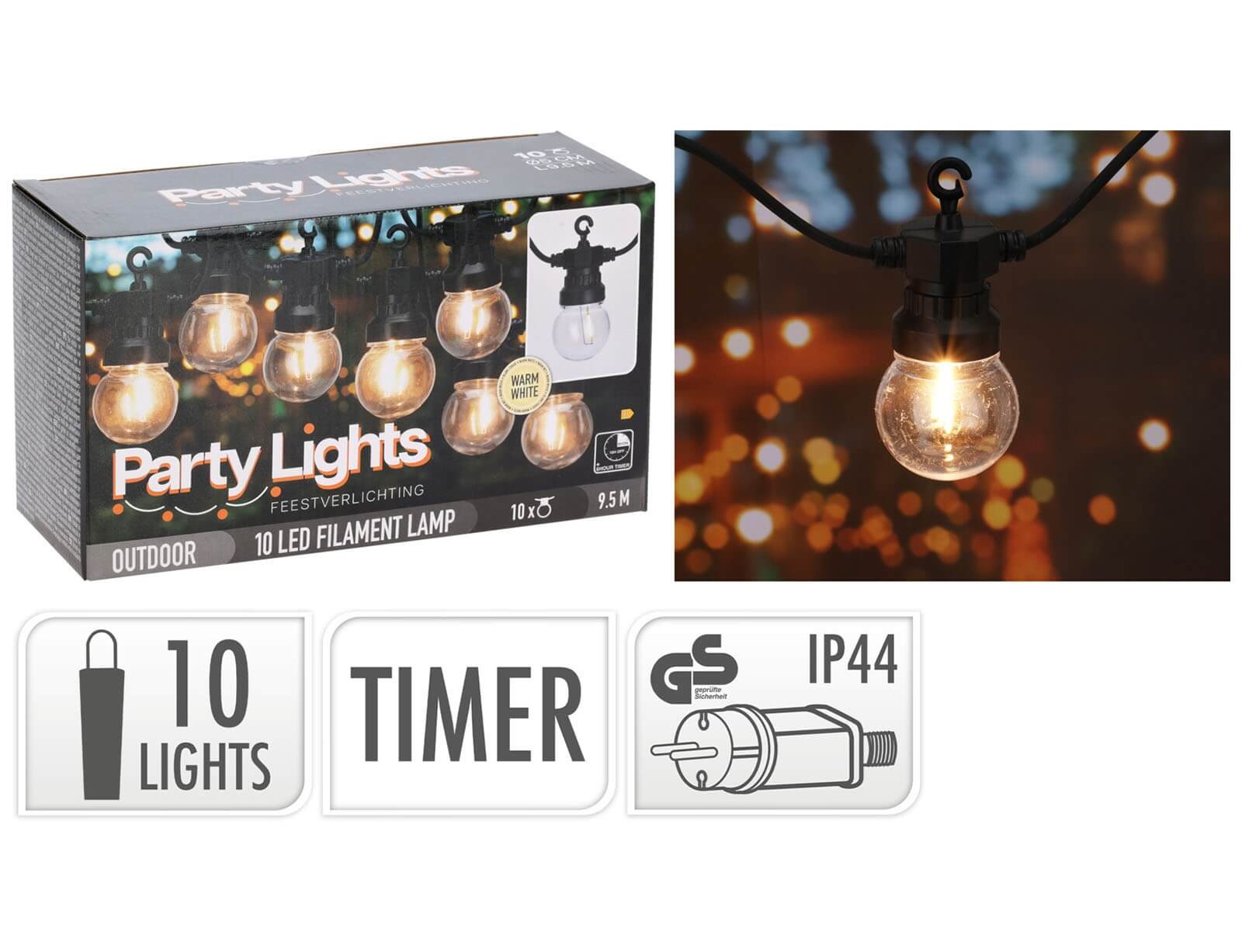 Διακοσμητικός Φωτισμός 10LED με χρονοδιακόπτη - 9.5 Μέτρα - Θερμό Λευκό