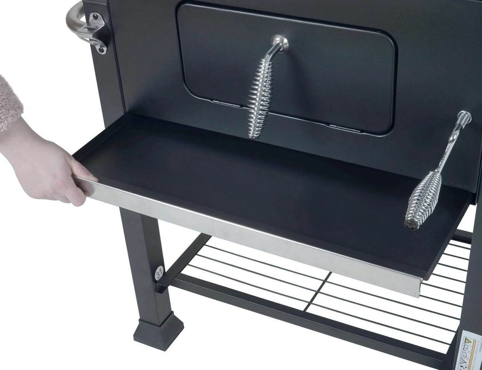 Kάθε γεύμα είναι μια γιορτή γεύσεων με φρεσκοψημένα κρέατα και υπέροχες συνοδευτικές επιλογές, για μια μοναδική εμπειρία BBQ που θα σας ενθουσιάσει. Η ψησταριά διαθέτει μεταλλικό σκελετό, που την καθιστά σταθερή και ανθεκτική. Οι δύο τροχοί εξασφαλίζουν εύκολη μετακίνηση στον κήπο σας. Ο αποσπώμενος συλλέκτης στάχτης διευκολύνει τον καθαρισμό. Επιπλέον, με τις αεραγωγούς, τη μετακινούμενη σχάρα για κάρβουνα, το ενσωματωμένο θερμόμετρο και το κλείσιμο με κλείστρο, είναι εύκολο να ρυθμίσετε τη θερμότητα και να ετοιμάσετε τα πιο νόστιμα φαγητά!