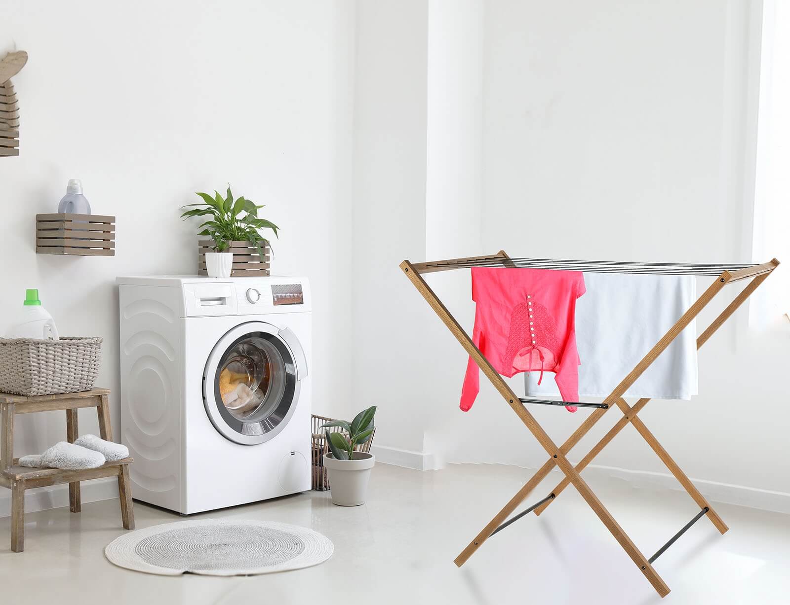 Πτυσσόμενη Απλώστρα ρούχων Aurora Line Sepio από ξύλο, με συνολική επιφάνεια απλώματος 7.08m και διαστάσεις 62.5x95x91.5cm
