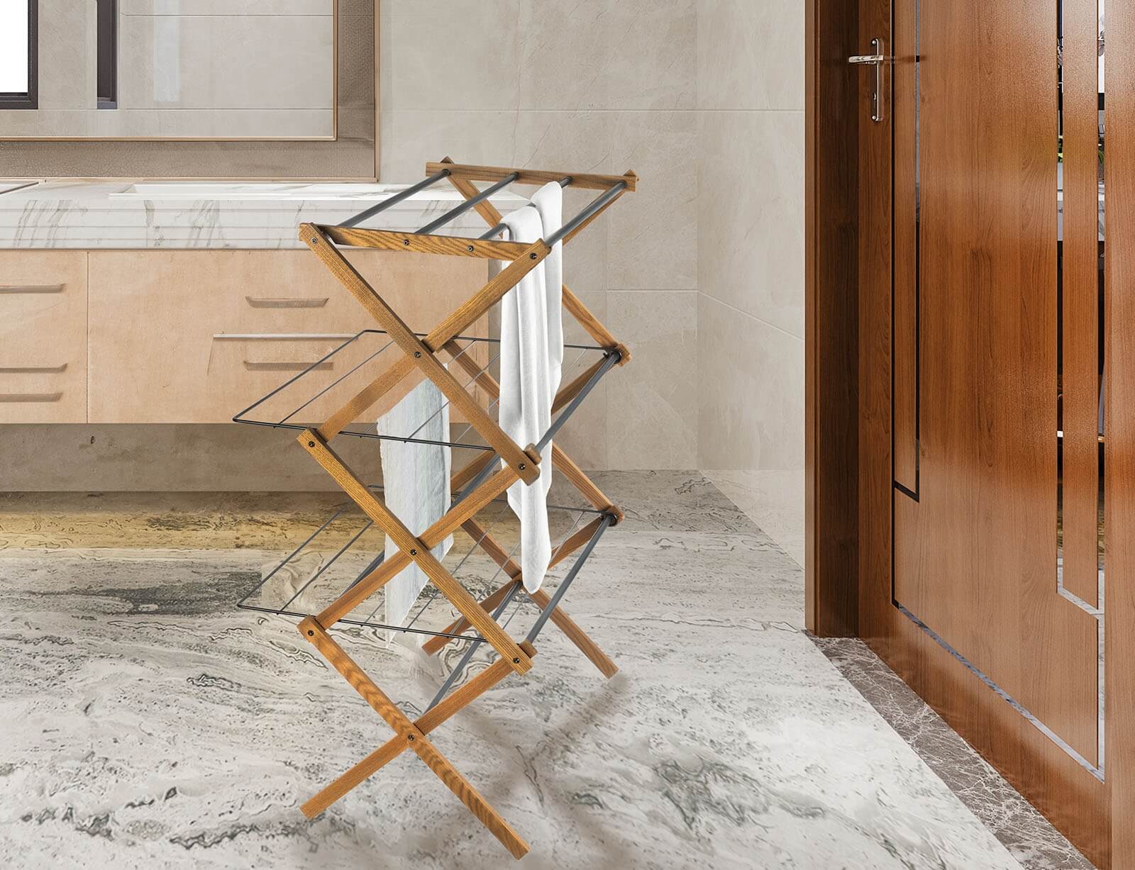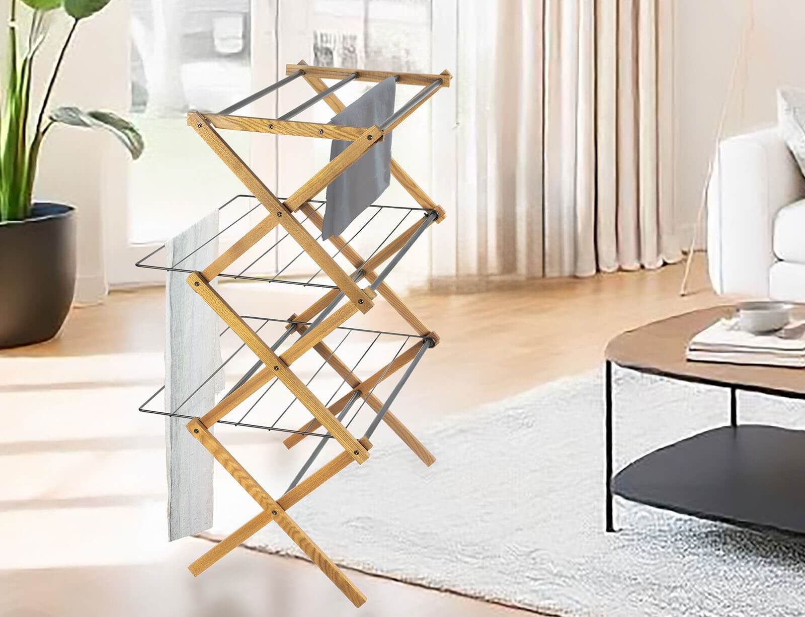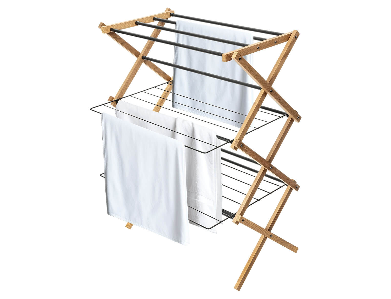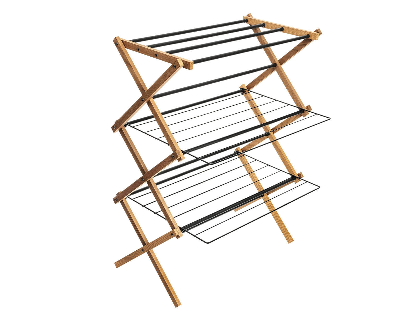 Πτυσσόμενη Απλώστρα ρούχων Aurora Plus Sepio από ξύλο, με συνολική επιφάνεια απλώματος 9.35m και διαστάσεις 69.5x97.5x90cm