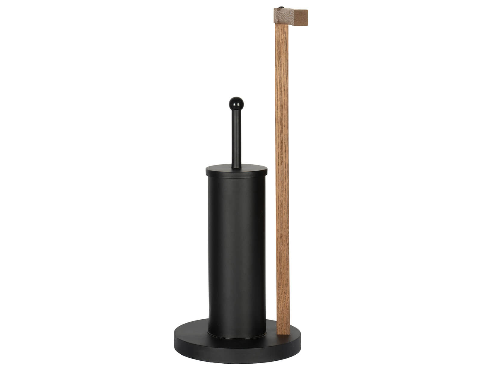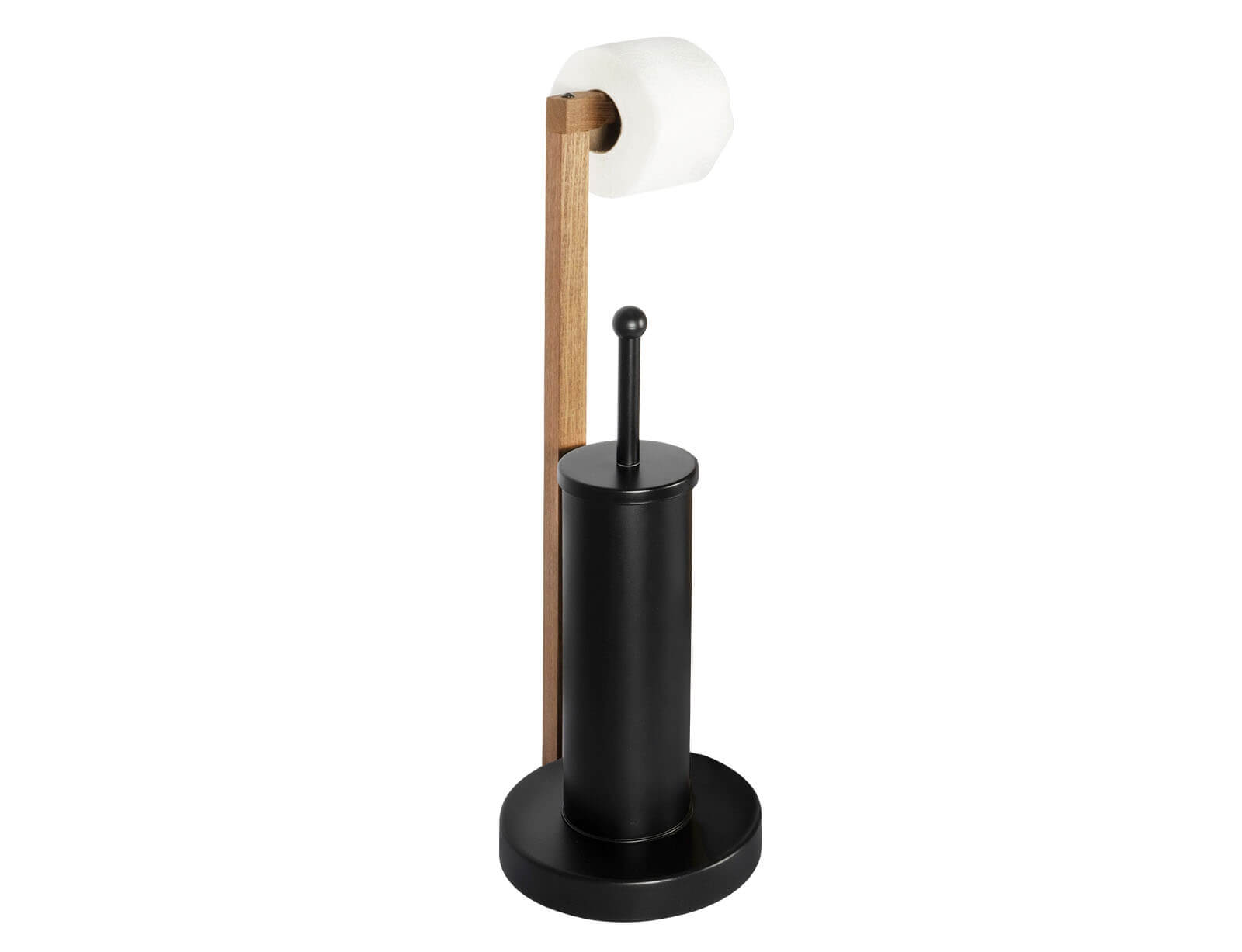 Ανανεώστε το μπάνιο σας με τη Βάση Χαρτιού Τουαλέτας με Πιγκάλ από τη Sepio! Με minimal σχεδιασμό και μοντέρνο μαύρο χρώμα, ταιριάζει απόλυτα σε κάθε στυλ διακόσμησης, προσφέροντας άνεση και οργάνωση στον χώρο σας. Η βάση είναι κατασκευασμένη από υψηλής ποιότητας μαύρο ατσάλι και ξύλο με πιστοποίηση FSC. Η βάση έχει μια συμπαγή στρογγυλή βάση, που εξασφαλίζει σταθερότητα. Το δοχείο της βούρτσας διαθέτει προστατευτικό πλαστικό δοχείο που προστατεύει από τη σκουριά και διευκολύνει τον καθαρισμό. Το ελαφρύ πλαίσιο σάς επιτρέπει να μετακινείτε εύκολα τη βάση σε ένα βολικό μέρος.