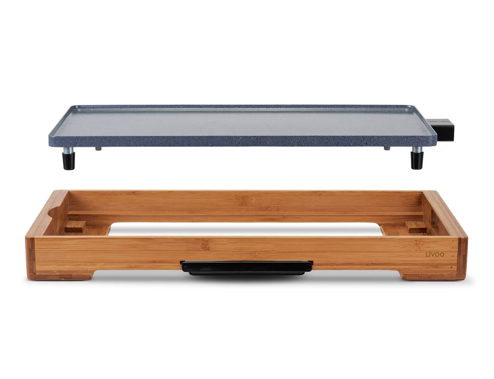 Με ισχύ 2200W, η ψησταριά σας εξασφαλίζει γρήγορη και ομοιόμορφη θέρμανση για να δημιουργήσετε τα πιο νόστιμα ψητά, ενώ ο ρυθμιζόμενος θερμοστάτης σας επιτρέπει να ελέγχετε την ένταση της θερμότητας για το τέλειο αποτέλεσμα κάθε φορά. Η επιφάνεια ψησίματος 50x24.5cm είναι ιδανική για να ψήσετε μεγάλες ποσότητες φαγητού, ενώ η πλάκα από χυτό αλουμίνιο εξασφαλίζει εξαιρετική αντοχή και αποτελεσματικότητα. Η κεραμική επίστρωση με όψη πέτρας προσφέρει όχι μόνο εξαιρετική αντοχή, αλλά και εύκολο καθάρισμα, ενώ η έλλειψη PFOA και PFOS καθιστά την ψησταριά φιλική προς το περιβάλλον και την υγεία. Για ακόμα μεγαλύτερη ευκολία, διαθέτει αφαιρούμενο δίσκο συλλογής λίπους, κρατώντας την καθαρή και απαλλαγμένη από λιπαρές ουσίες. Η επίστρωση της πλάκας, εξασφαλίζει υψηλές αντικολλητικές ιδιότητες. Έχει σώμα από μπαμπού, το οποίο παραμένει δροσερό στην αφή, ώστε να μπορείτε να αλλάξετε την πλάκα χωρίς τον κίνδυνο καψίματος.