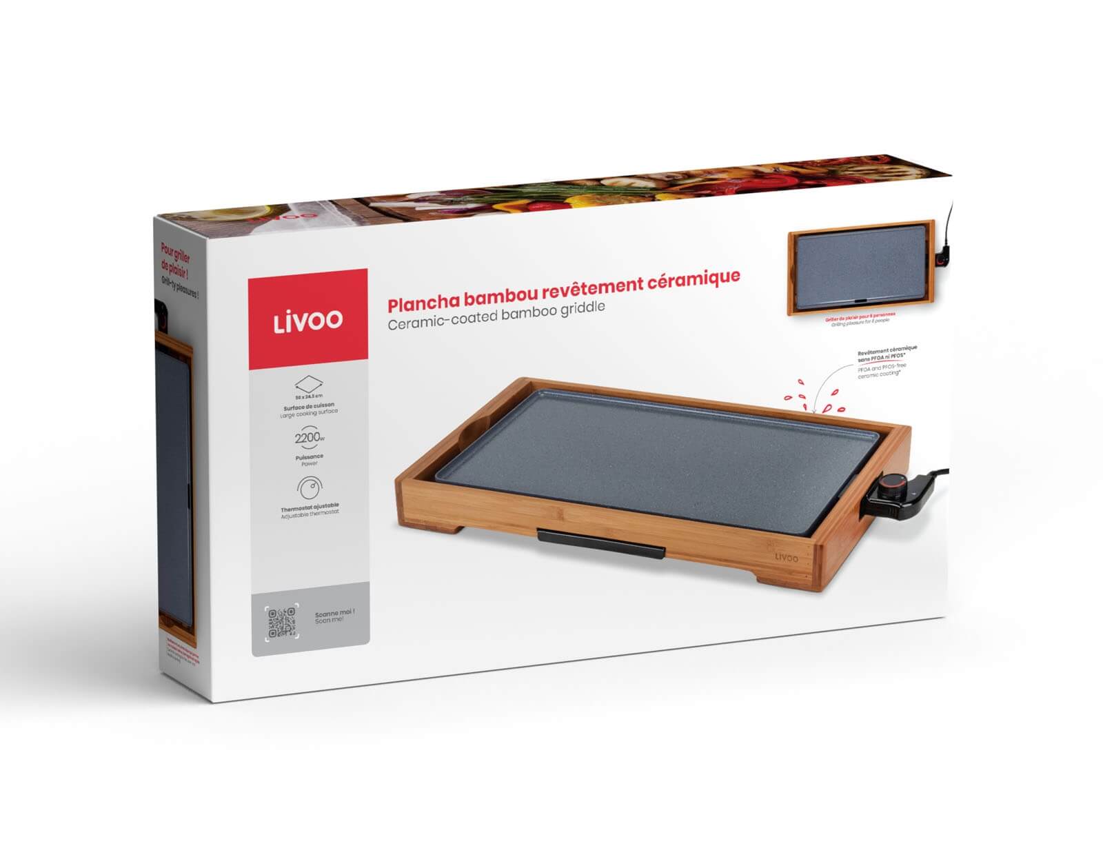 Ηλεκτρική Ψησταριά Livoo DOC322 με ισχύ 2200W, ρυθμιζόμενο θερμοστάτη και επιφάνεια ψησίματος 50x24.5cm