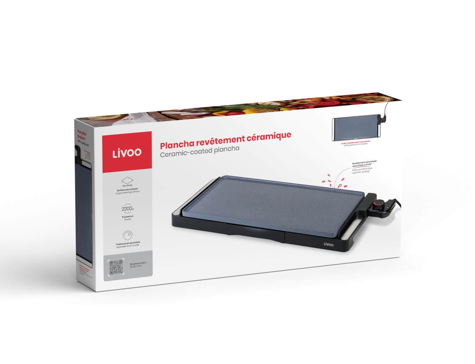 Ηλεκτρική Ψησταριά plancha Livoo DOC320 με ισχύ 2000W, ρυθμιζόμενο θερμοστάτη και επιφάνεια ψησίματος 50x25cm