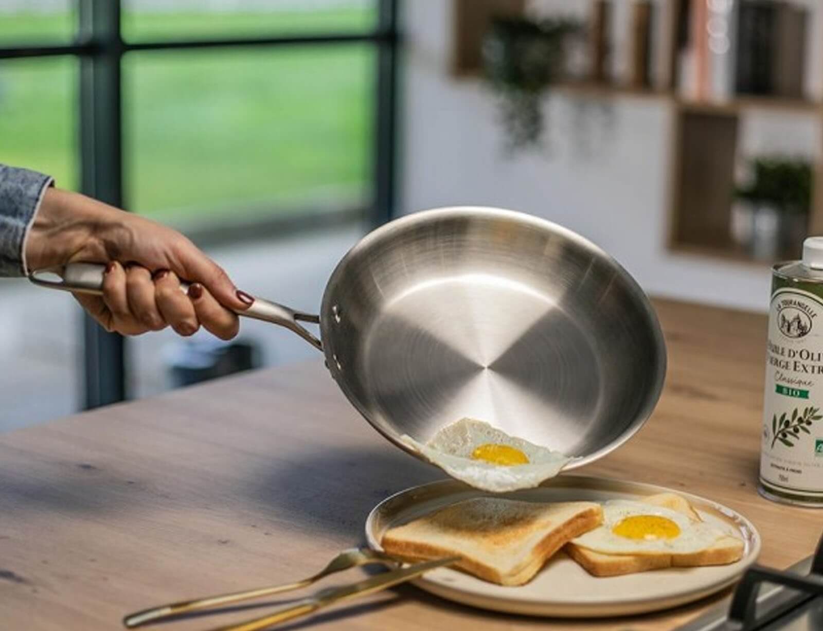 Ανακαλύψτε το τηγάνι από ανοξείδωτο χάλυβα Triply. Με διάμετρο 20 cm και πάχος 2,3 mm, εγγυάται ομοιόμορφο και ακριβές μαγείρεμα χάρη στις 3 στρώσεις του: μια στρώση από ανοξείδωτο χάλυβα 304 18/10, μια στρώση αλουμινίου και μια στρώση από ανοξείδωτο χάλυβα 403. Ο ανοξείδωτος χάλυβας 304 είναι ιδιαίτερα ανθεκτικός στη διάβρωση και τη φθορά, ενώ ο πυρήνας αλουμινίου εξασφαλίζει ομοιόμορφη κατανομή θερμότητας, επιτρέποντας ελεγχόμενο μαγείρεμα κάθε φορά. Όσο για το ανοξείδωτο ατσάλι 403, ενισχύει την αντοχή και την αντοχή στις υψηλές θερμοκρασίες. Το τηγάνι είναι συμβατό με όλους τους τύπους πηγών θερμότητας, συμπεριλαμβανομένης της επαγωγής και του φούρνου. Η καρφιτσωμένη, ανθεκτική στη θερμότητα λαβή εξασφαλίζει ασφαλές και άνετο κράτημα. Και για μεγαλύτερη ευκολία, πλένεται και στο πλυντήριο πιάτων. Χωρίς PFOA και PFOS, μπορείτε να μαγειρέψετε με ηρεμία, προστατεύοντας τόσο την υγεία σας όσο και το περιβάλλον.