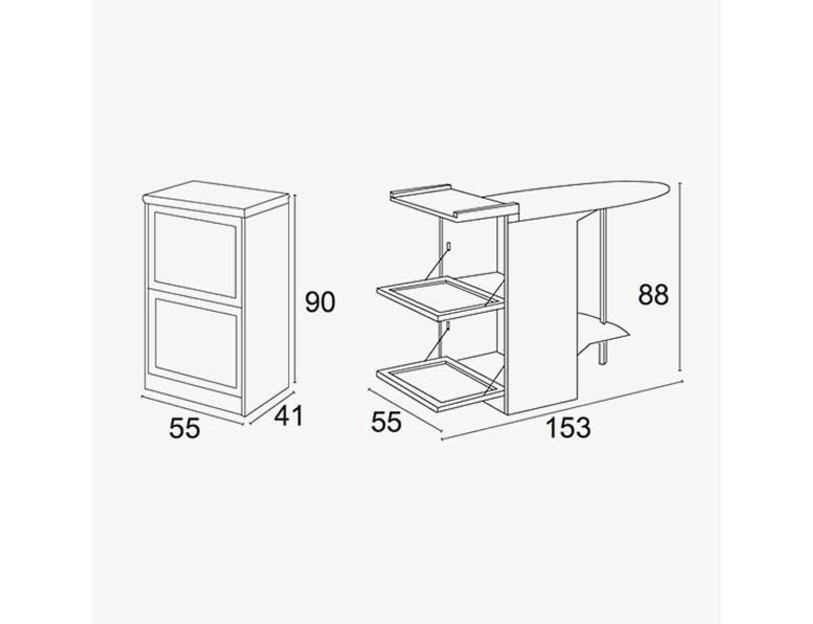 Η Stiromobile ARiT δεν είναι απλώς μια σιδερώστρα, αλλά μια έξυπνη και κομψή λύση που συνδυάζει στυλ, πρακτικότητα και εργονομία. Με την εξαιρετικής ποιότητας κατασκευή της, προσφέρει σταθερότητα και διαχρονική αισθητική, ταιριάζοντας σε κάθε χώρο. Χάρη στο εύκολο σύστημα κλεισίματος και τους τροχούς, είναι εύκολο να το μετακινήσετε μέσα στο σπίτι για αποθήκευση. Δύο μεγάλα συρτάρια, με μαγνήτη για ασφαλές κλείσιμο, σας επιτρέπουν να αποθηκεύετε τα ρούχα σας πριν και μετά τη χρήση. Επιπλέον, οι πόρτες, αφού ανοίξουν, μπορούν να χρησιμεύσουν ως στήριγμα για τα ίδια τα ρούχα.