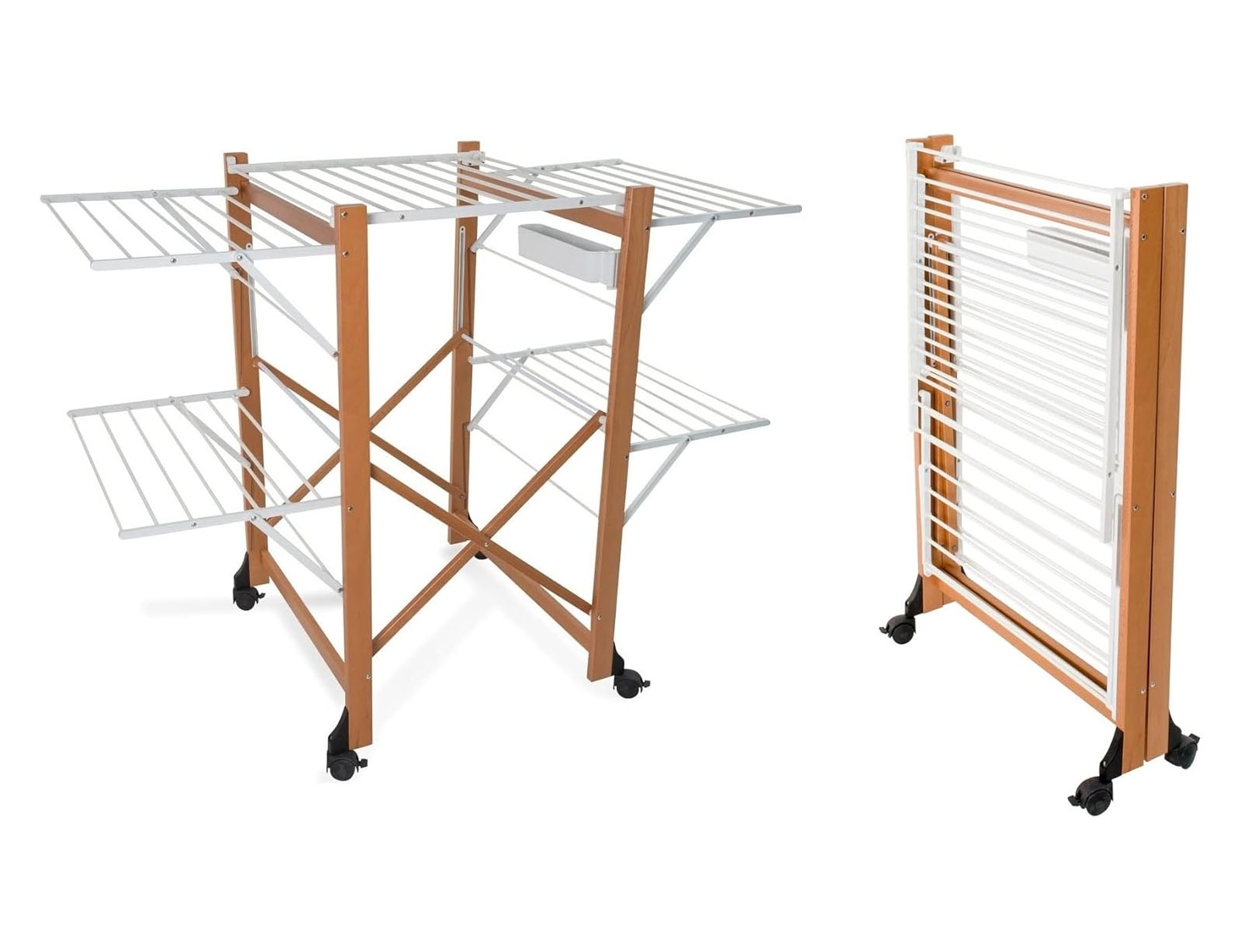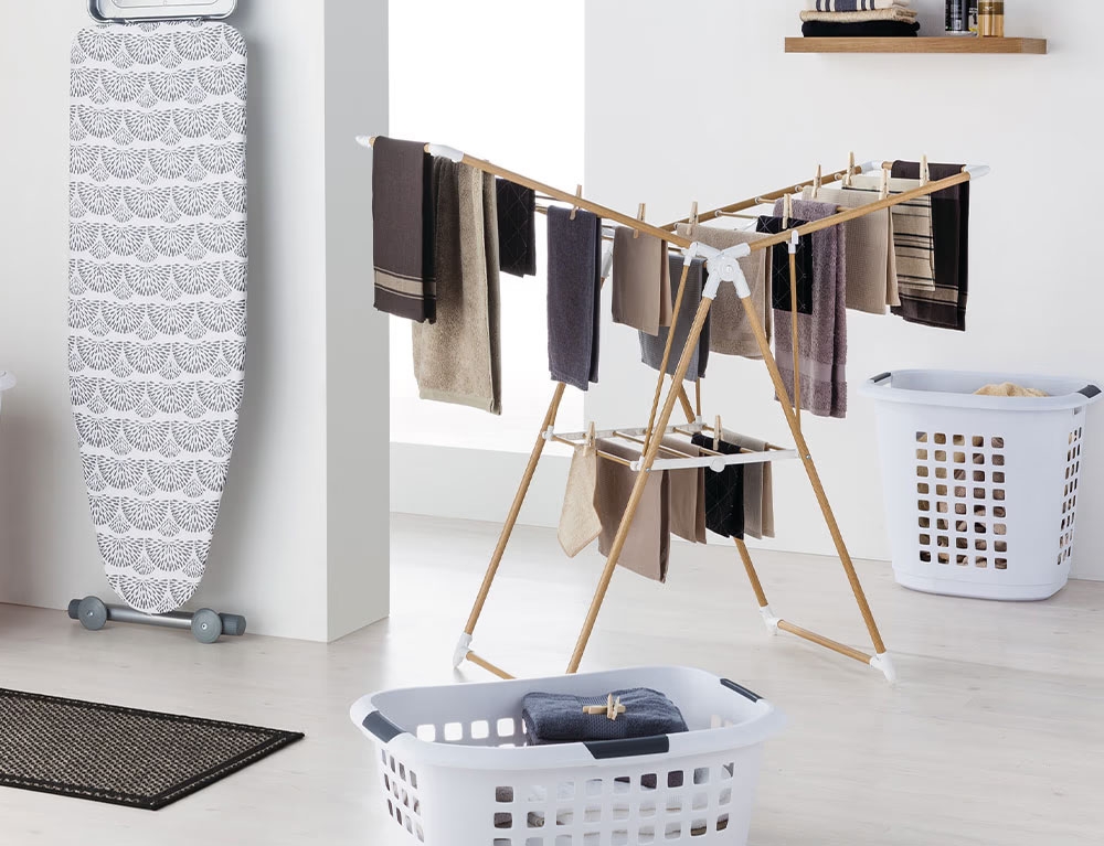 Η απλώστρα Aliante από την ARiT συνδυάζει κομψό σχεδιασμό και μέγιστη πρακτικότητα, προσφέροντας άνεση και ανθεκτικότητα στην καθημερινότητά σας. Κατασκευασμένη από συμπαγές ξύλο οξιάς, με ράβδους αλουμινίου με επίστρωση πούδρας, αυτή η απλώστρα εξασφαλίζει μέγιστη αντοχή και ανθεκτικότητα στη χρήση. Τα ανεξάρτητα νάιλον πλέγματα επιτρέπουν στα ρούχα να στεγνώνουν ομοιόμορφα, ενώ το καλάθι σάς δίνει άμεση πρόσβαση στα μανταλάκια, ώστε να έχετε τα πάντα οργανωμένα. Διαθέτει συνολική επιφάνεια απλώματος 25 μέτρων και περιστρεφόμενους τροχούς με κλείδωμα από ελαστικό που επιτρέπουν εύκολη μετακίνηση χωρίς να γρατσουνίζουν το πάτωμα.