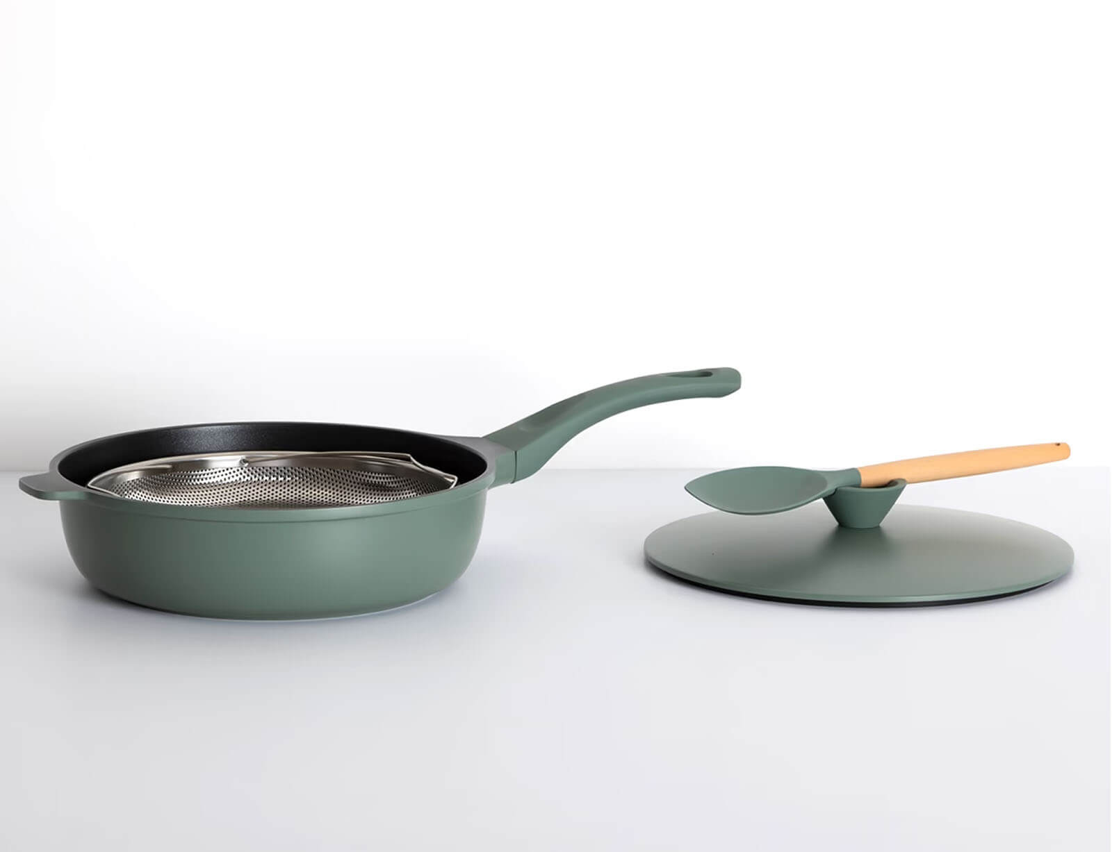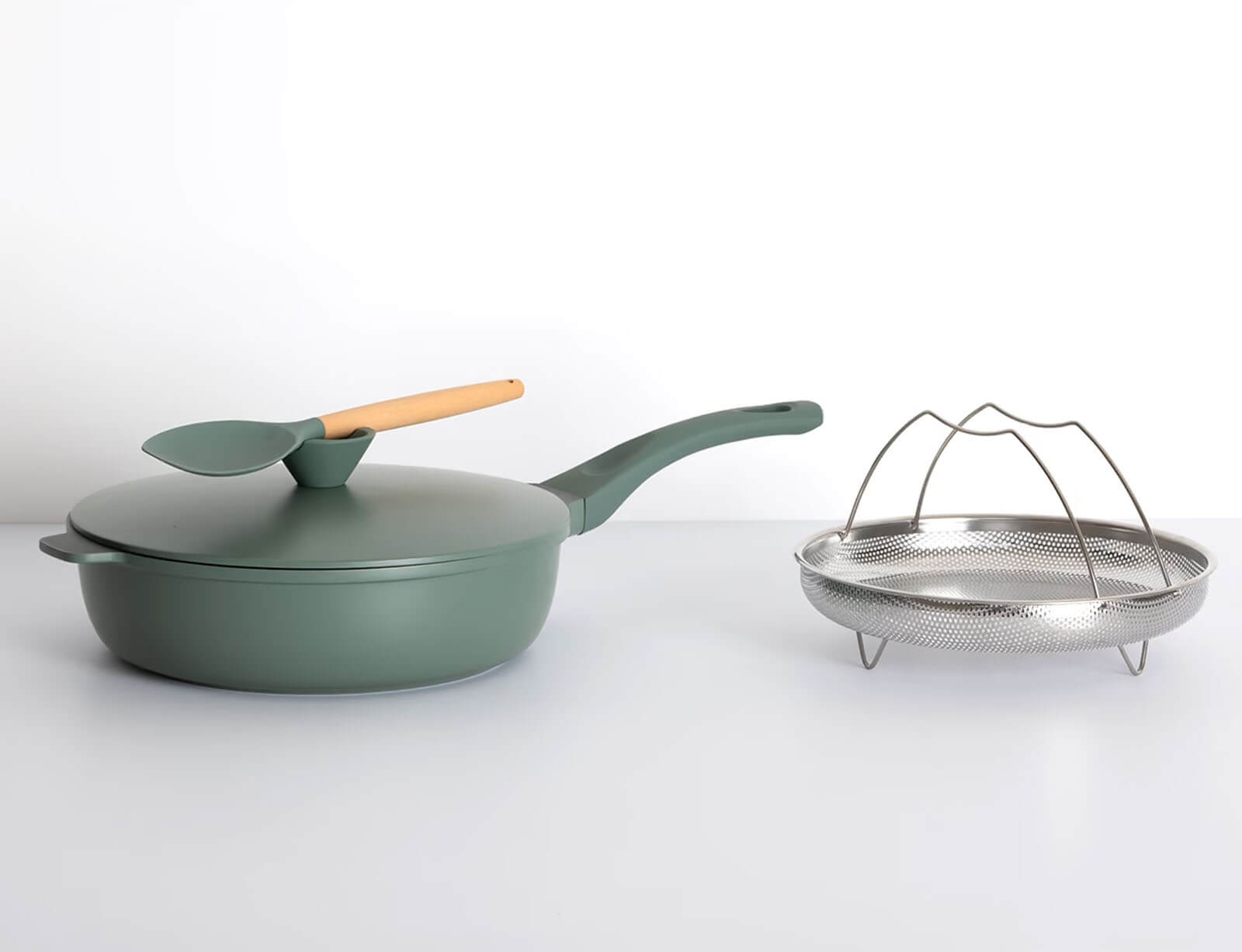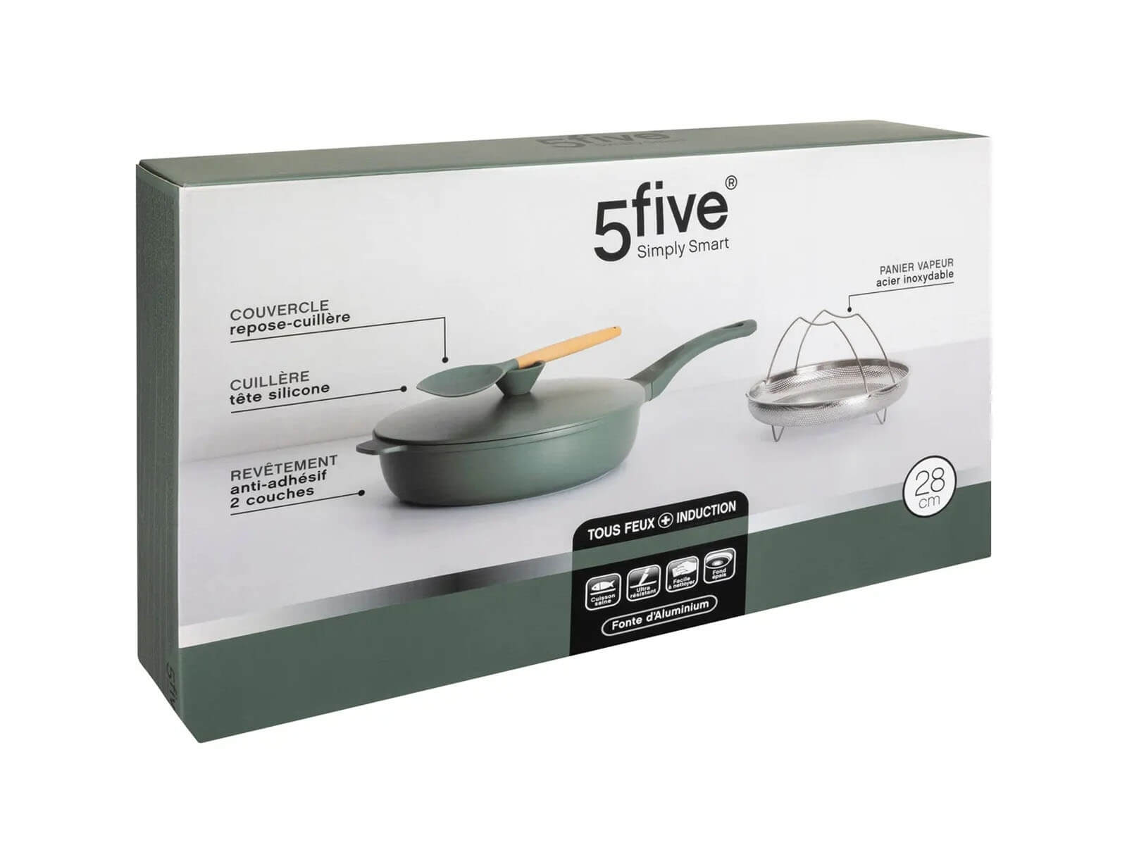 Τηγάνι sauté 5five με φριτέζα, σπάτουλα και διάμετρο 28cm - Olive Green