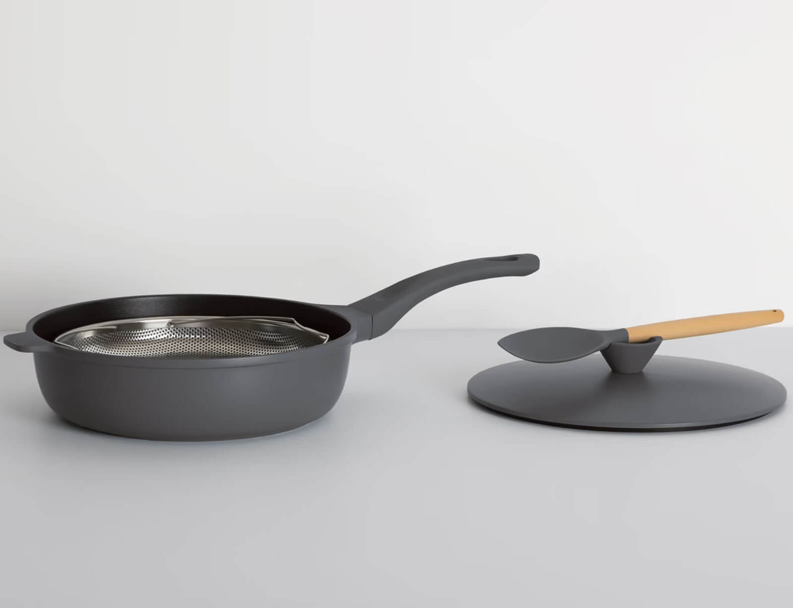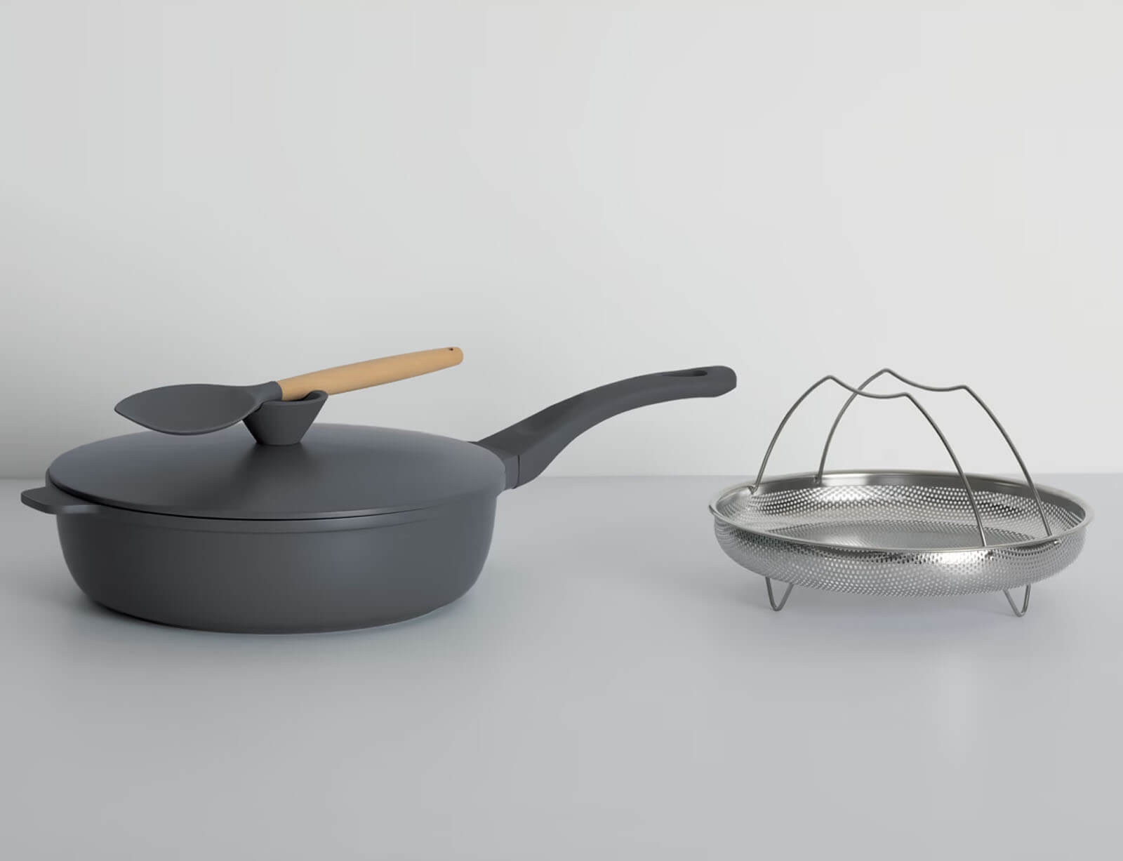 Τηγάνι sauté 5five με φριτέζα, σπάτουλα και διάμετρο 28cm - Light Gray