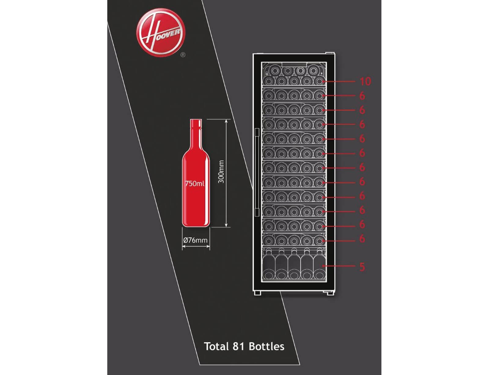Συντηρητής Κρασιού Hoover H-WINE 700 HWC 200 EELW/NF Με Wi-Fi, Ενεργειακή Κλάση G Και Χωρητικότητα 81 Φιάλες