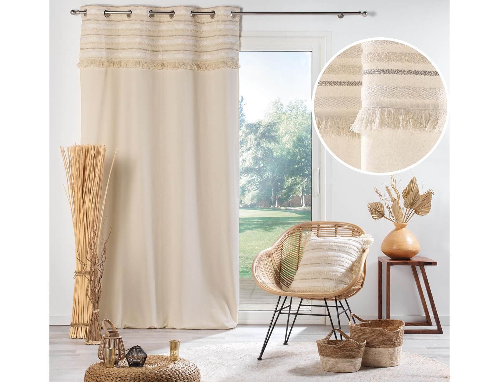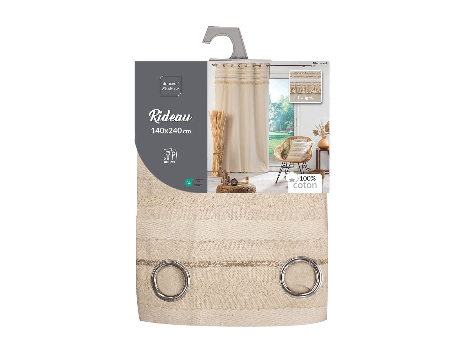 Κουρτίνα Υψηλής Σκίασης Αtlas Douceur d'intérieur με τρουκς και διαστάσεις 140x240cm - Natural