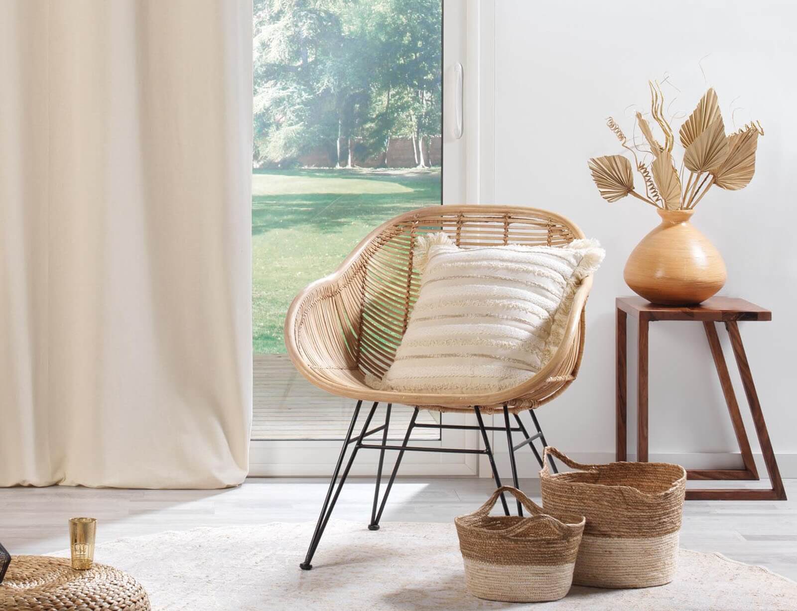 Το βαμβάκι είναι ένα φυσικό ύφασμα που ξεχωρίζει για την ελαφρότητά του, τη μαλακότητά του και την φυσική του ροή. Το βαμβακερό ύφασμα επιτρέπει στο φως να περάσει μέσα από αυτό, ανάλογα με την πυκνότητά του, προσφέροντας έτσι ευχάριστη φωτεινότητα και αίσθηση ανοιχτού χώρου. Για την καλύτερη φροντίδα της κουρτίνας σας συνίσταται να ακολουθήσετε τις οδηγίες στην ετικέτα.