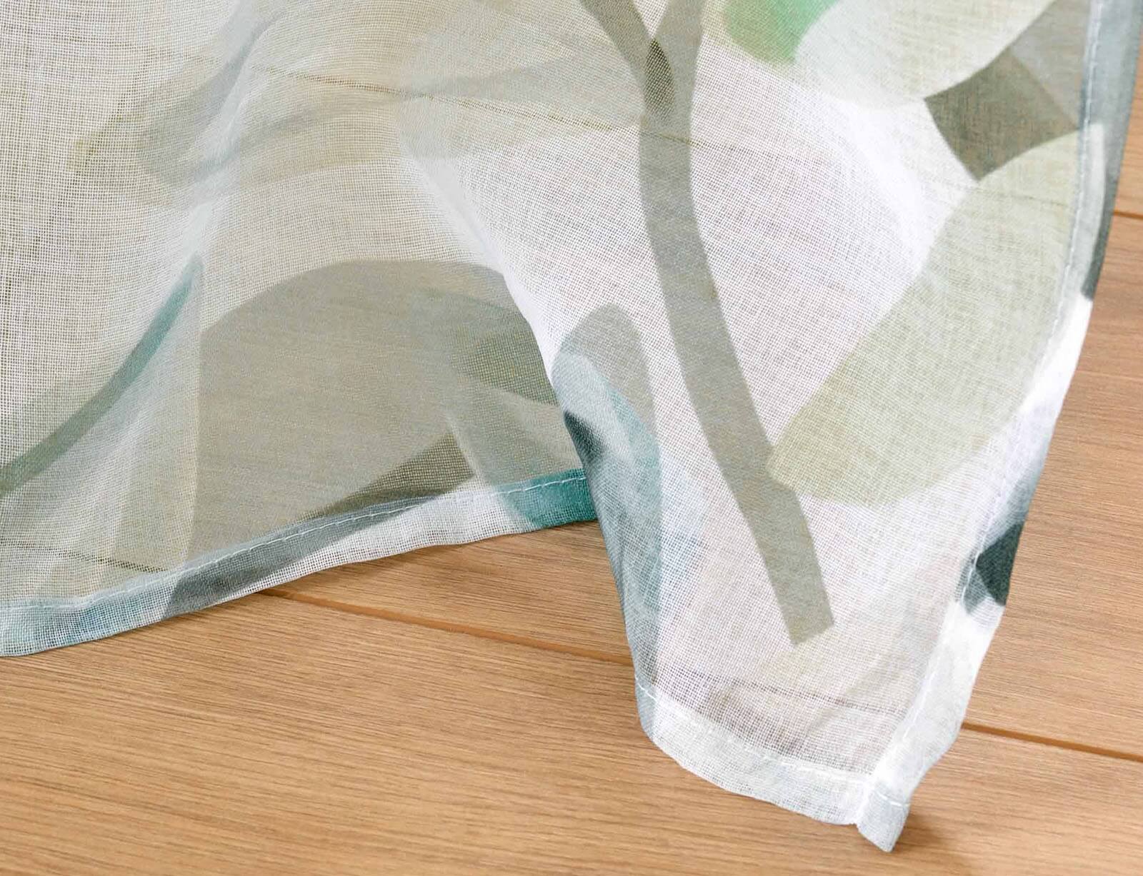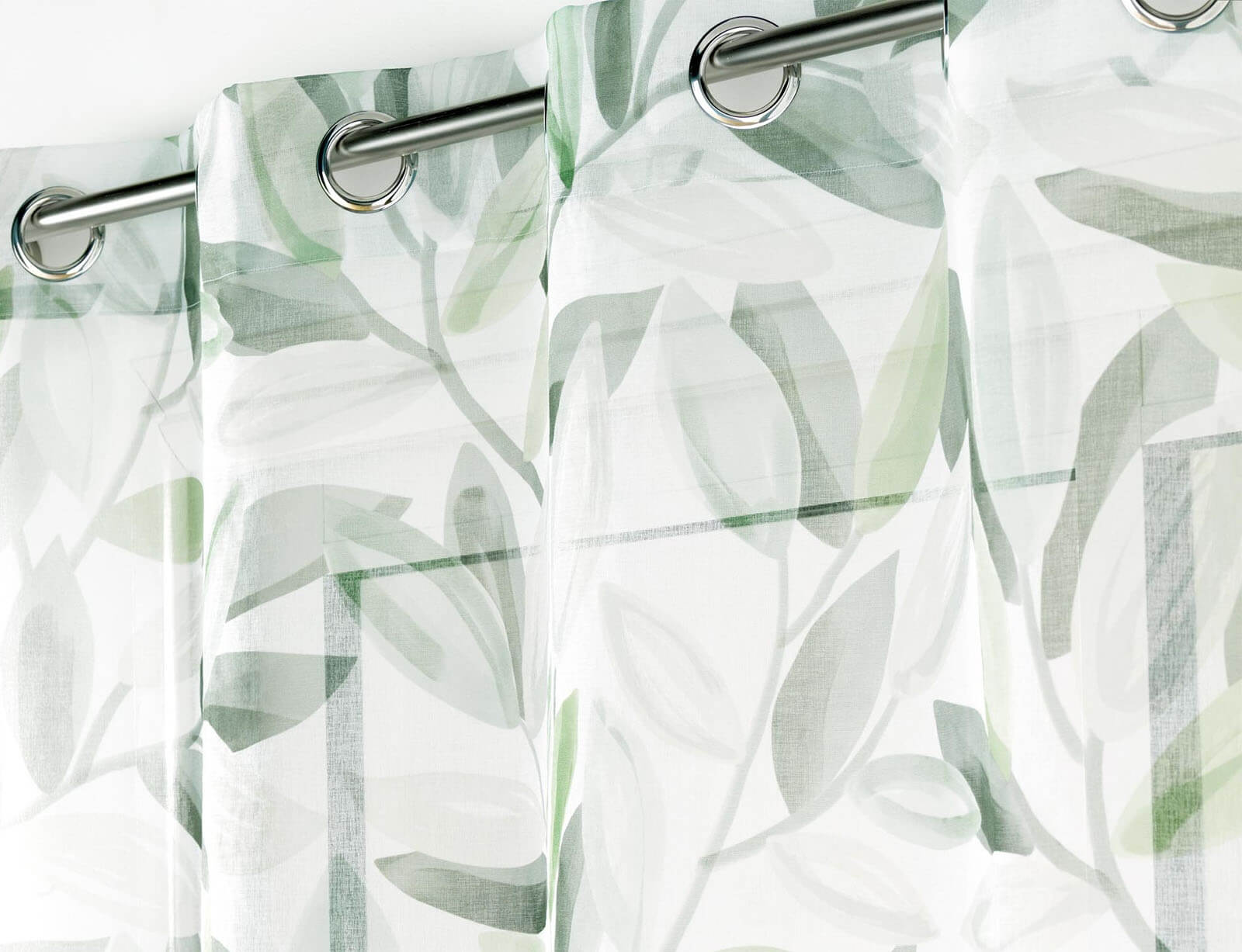 Είναι κατασκευασμένη από ύφασμα βουάλ, ένα πολύ ελαφρύ, διάφανο ύφασμα με ίνες από πολυεστέρα για μεγαλύτερη ανθεκτικότητα. Για την καλύτερη φροντίδα της κουρτίνας σας συνίσταται να ακολουθήσετε τις οδηγίες στην ετικέτα.