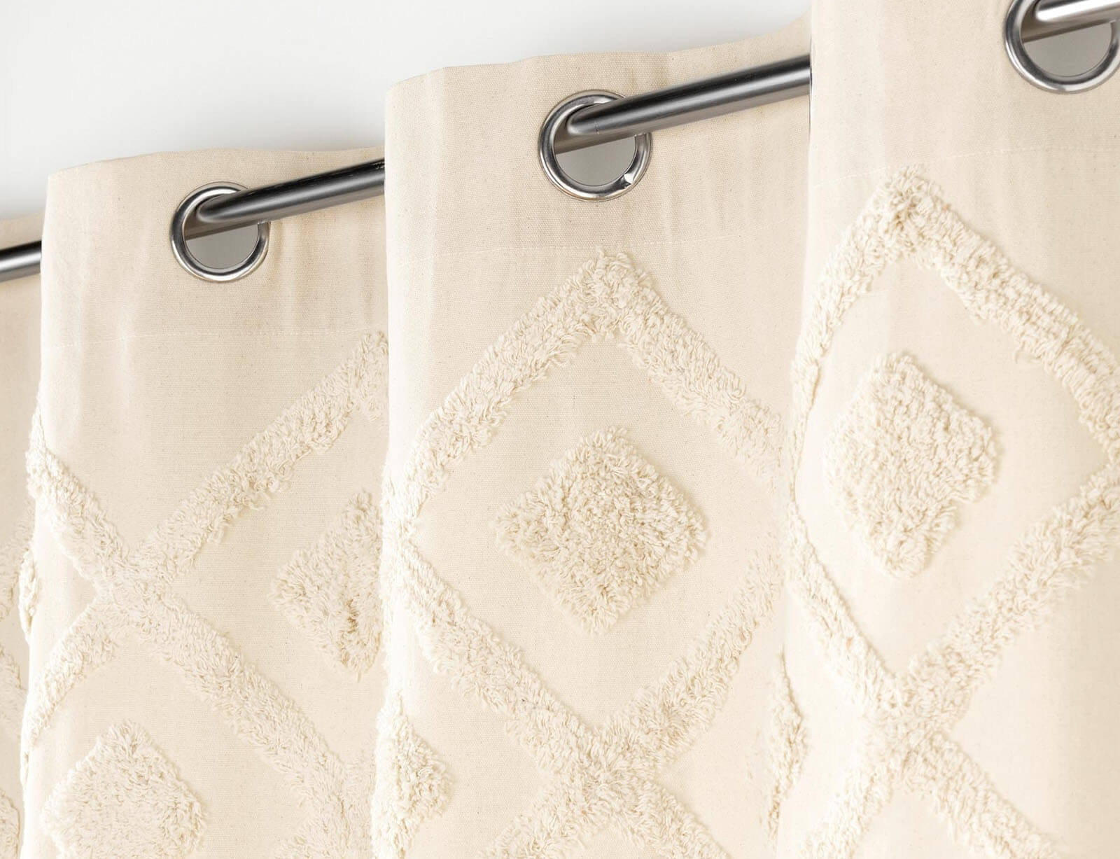 Το βαμβάκι προσφέρει φυσική αίσθηση και μαλακή υφή, ενώ ο πολυέστερας προσφέρει επιπλέον ανθεκτικότητα και ευκολία στη συντήρηση. Συνδυασμένα, τα δύο υλικά δημιουργούν μια κουρτίνα που είναι τόσο φιλική προς το περιβάλλον όσο και εξαιρετικά ανθεκτική στη φθορά, την υγρασία και τις καθημερινές φθορές. Για την καλύτερη φροντίδα της κουρτίνας σας συνίσταται να ακολουθήσετε τις οδηγίες στην ετικέτα.