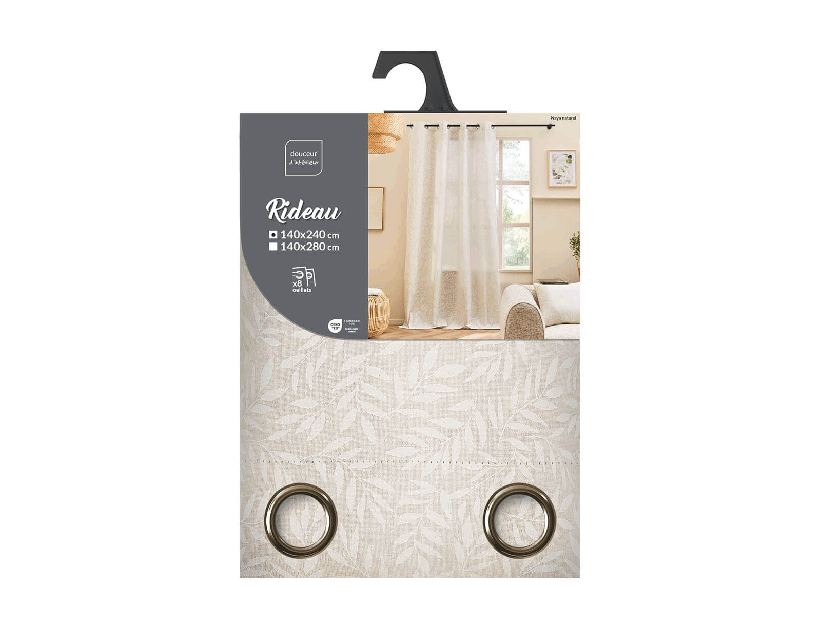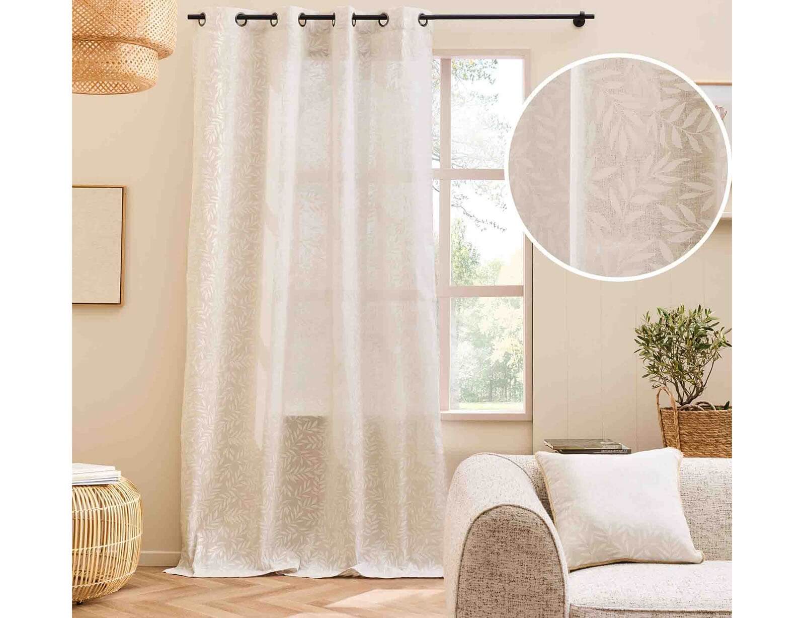 Κουρτίνα Mέτριας Σκίασης Naya Douceur d'intérieur με τρουκς και διαστάσεις 140x240cm - Natural