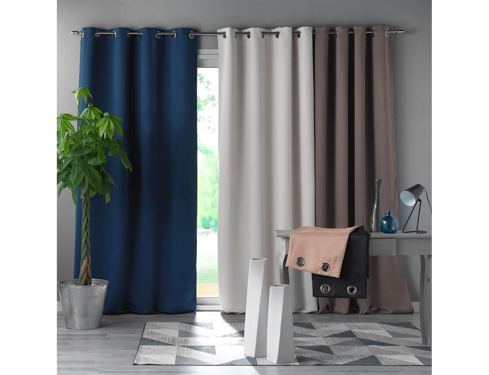Οι κουρτίνες συσκότισης εμποδίζουν τις επιβλαβείς ακτίνες UV, προστατεύοντας τα έπιπλα και τα υφάσματα από την φθορά του ήλιου, ενώ παράλληλα διατηρούν τη θερμοκρασία του χώρου σταθερή, μειώνοντας τη θερμότητα που εισέρχεται μέσω των παραθύρων. Τα τρουκς προσφέρουν μια σύγχρονη αίσθηση στο χώρο σας και η τοποθέτηση της κουρτίνας γίνεται πιο εύκολη και βολική. Απλά περάστε την κουρτινόβεργα μέσα από τα τρουκς της κουρτίνας, κρεμάστε την ξανά και τελειώσατε.