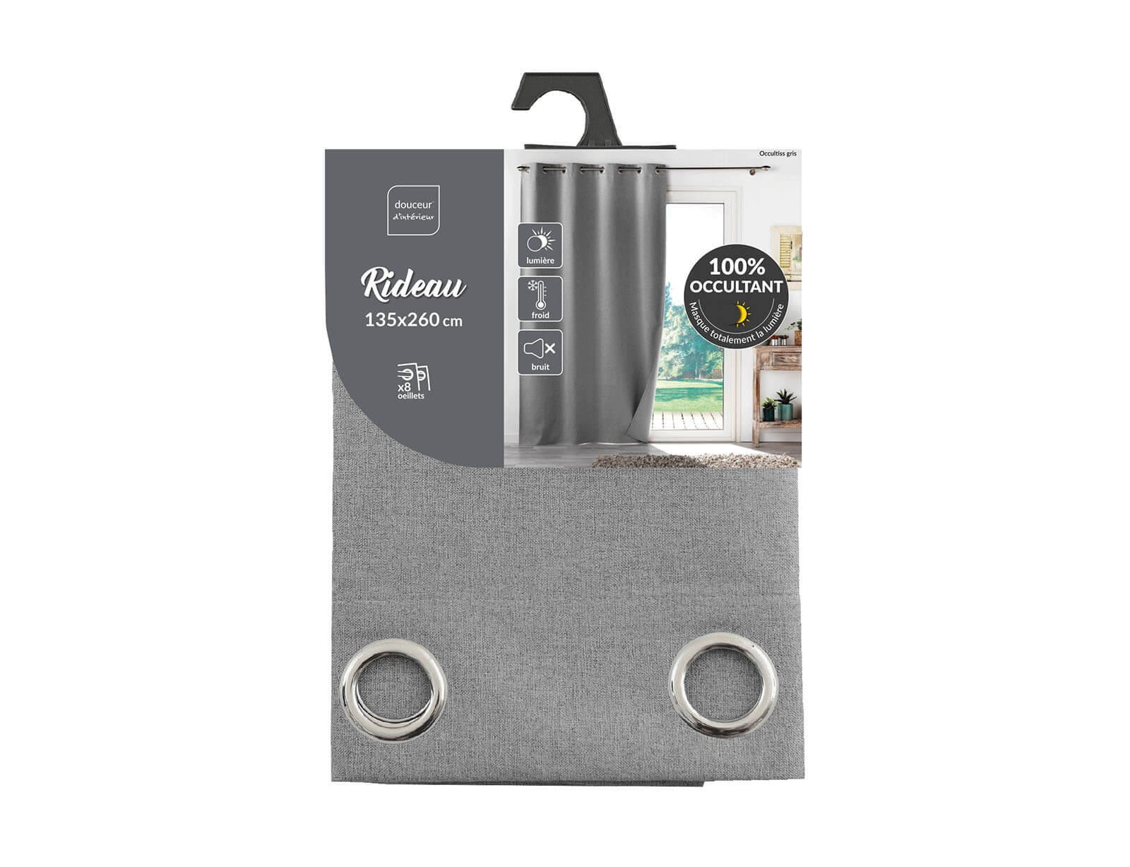 Κουρτίνα Συσκότισης Occultiss Douceur d'intérieur με τρουκς και διαστάσεις 135x260cm - Grey