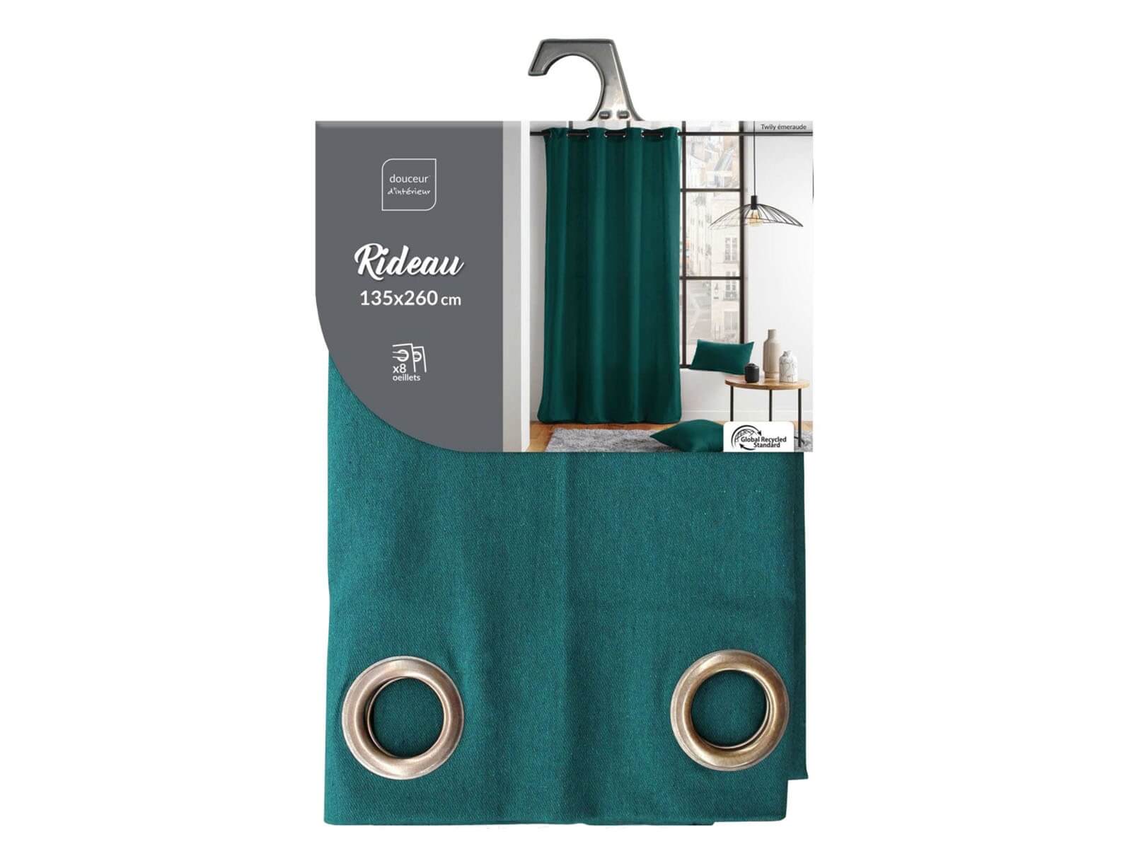 Κουρτίνα Mέτριας Σκίασης Twily Douceur d'intérieur με τρουκς και διαστάσεις 135x260cm - Emerald Green