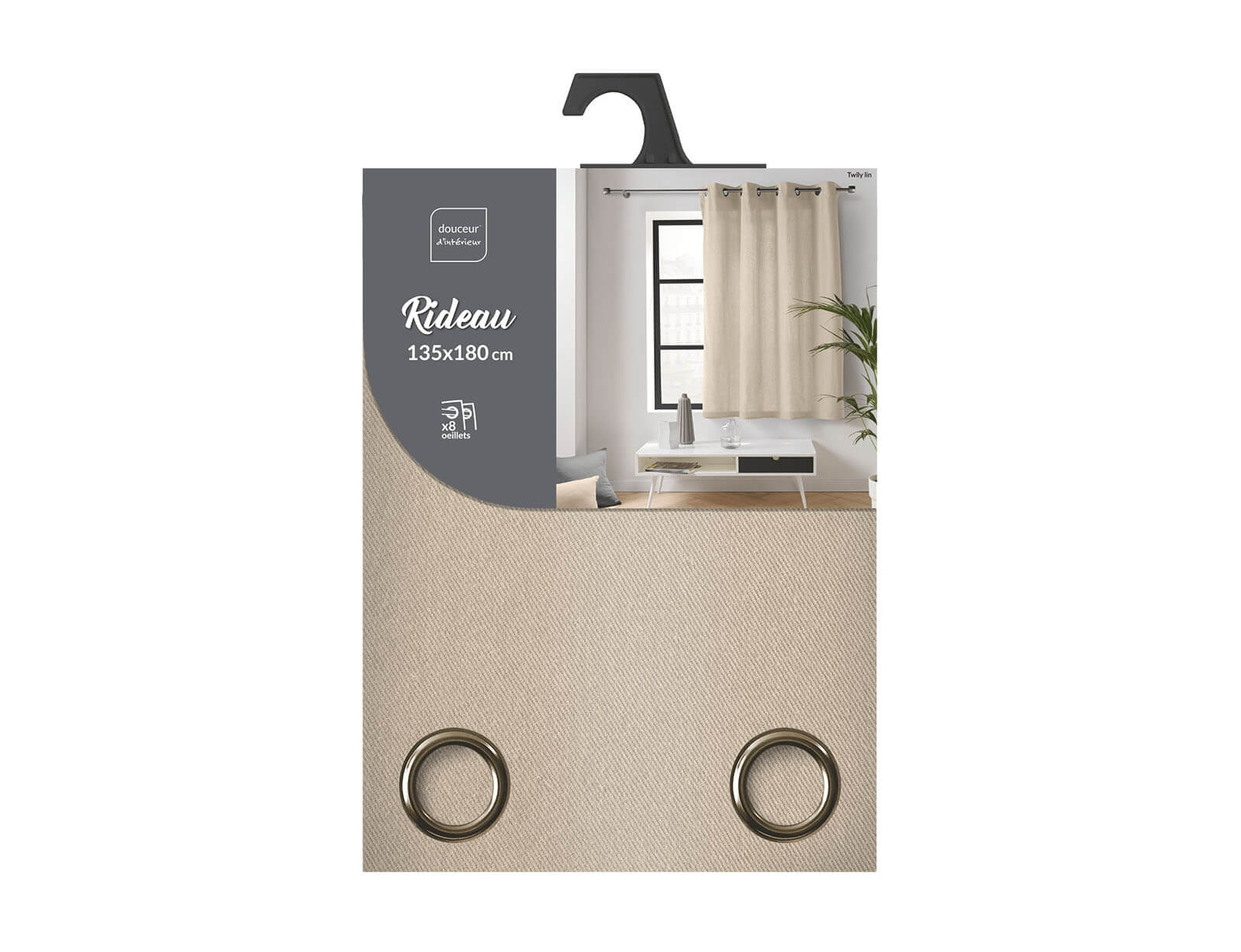 Κουρτίνα Παραθύρου Mέτριας Σκίασης Twily Douceur d'intérieur με τρουκς και διαστάσεις 135x180cm - Linen