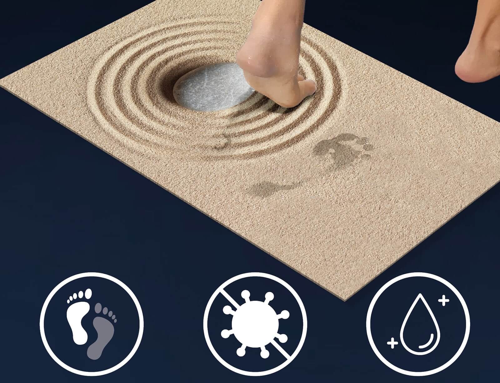 Ανανεώστε το μπάνιο σας με το απορροφητικό πατάκι Serena από τη Douceur d'intérieur! Κατασκευασμένο από πολυεστέρα και καουτσούκ απορροφάει εύκολα το νερό και στεγνώνει εξαιρετικά γρήγορα, αποτρέποντας την ανάπτυξη μούχλας και βακτηρίων. Ανθεκτικό, αντιολισθητικό με σαγρέ επιφάνεια, εύκολο στον καθαρισμό και φιλικό προς το περιβάλλον, αυτό το πατάκι προσφέρει την απόλυτη λύση για ένα καθαρό και υγιεινό μπάνιο.