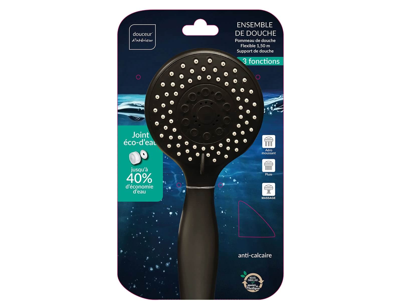 Τηλέφωνο Μπάνιου Hydro Douceur d'Intérieur με 3 λειτουργίες ροής, σπιράλ και σύνδεσμο εξοικονόμησης νερού - Black