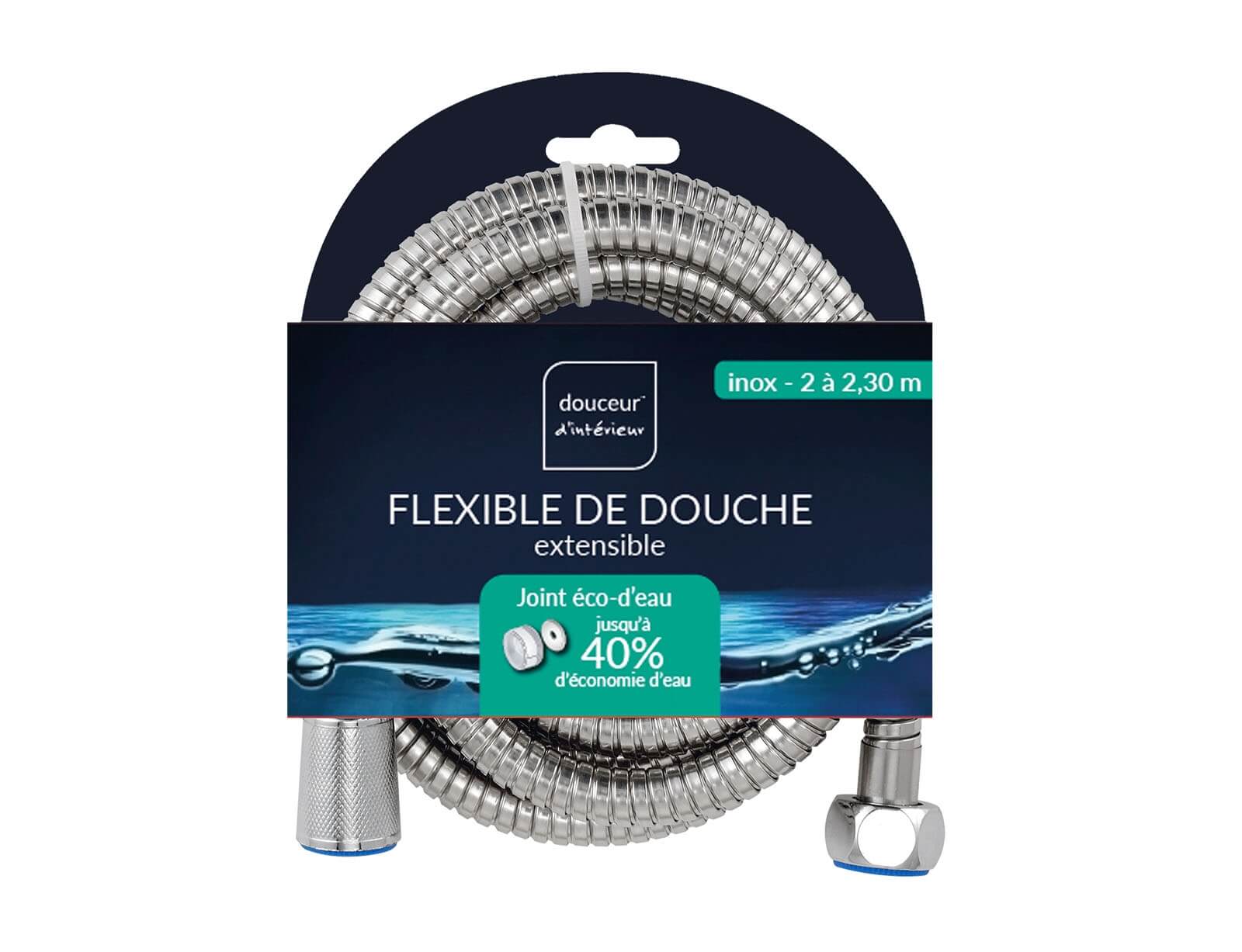 Αναβαθμίστε την εμπειρία του μπάνιου σας με το σωλήνα ντους Hydro Douceur d'intérieur, με συνολικό μήκος 230 cm, ιδανικό για να προσφέρει ευχέρεια και άνεση σε κάθε ντους. Διαθέτει τυπικά σπειρώματα 1/2" που ταιριάζουν σε οποιαδήποτε βρύση και κεφαλή ντους. Κατασκευασμένο από ανοξείδωτο ατσάλι υψηλής ποιότητας, o εύκαμπτος σωλήνας ντους είναι ανθεκτικός και ανθεκτικός στη διάβρωση και την υγρασία. Η πηγή νερού μπορεί να ρυθμιστεί χρησιμοποιώντας έναν σύνδεσμο λευκής σιλικόνης. Το σύστημα αέρα-νερού σάς επιτρέπει να διατηρείτε υψηλή πίεση νερού με λιγότερη κατανάλωση νερού. Με αυτόν τον τρόπο, μπορείτε να εξοικονομήσετε το 40% του νερού. Αυτή η λύση όχι μόνο έχει θετικό αντίκτυπο στους λογαριασμούς του νερού σας, αλλά βοηθά επίσης στην προστασία των φυσικών πόρων του πλανήτη μας.