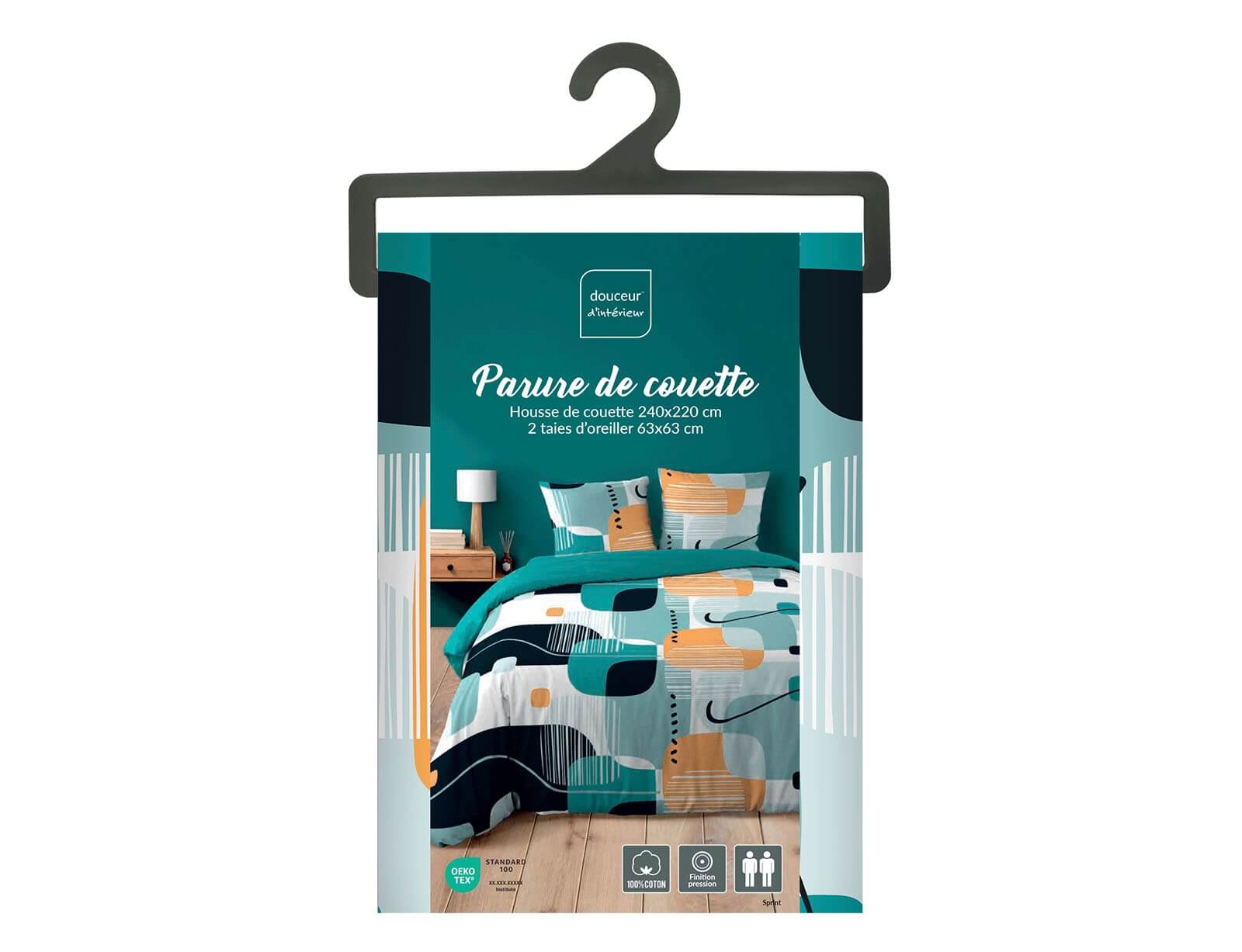 Ανανεώστε και δώστε χρώμα στο υπνοδωμάτιο με το σετ παπλωματοθήκης και μαξιλαροθήκης από τη Douceur d'intérieur. Κατασκευασμένο από 100% βαμβάκι 42TC, προσφέρει απαλή υφή και απαλή αίσθηση στο δέρμα σας, εξασφαλίζοντας έναν ήρεμο και ξεκούραστο ύπνο. Το βαμβάκι 42TC διασφαλίζει αντοχή και μακροχρόνια χρήση, χωρίς να χάνει τη ζωντάνια των χρωμάτων του.