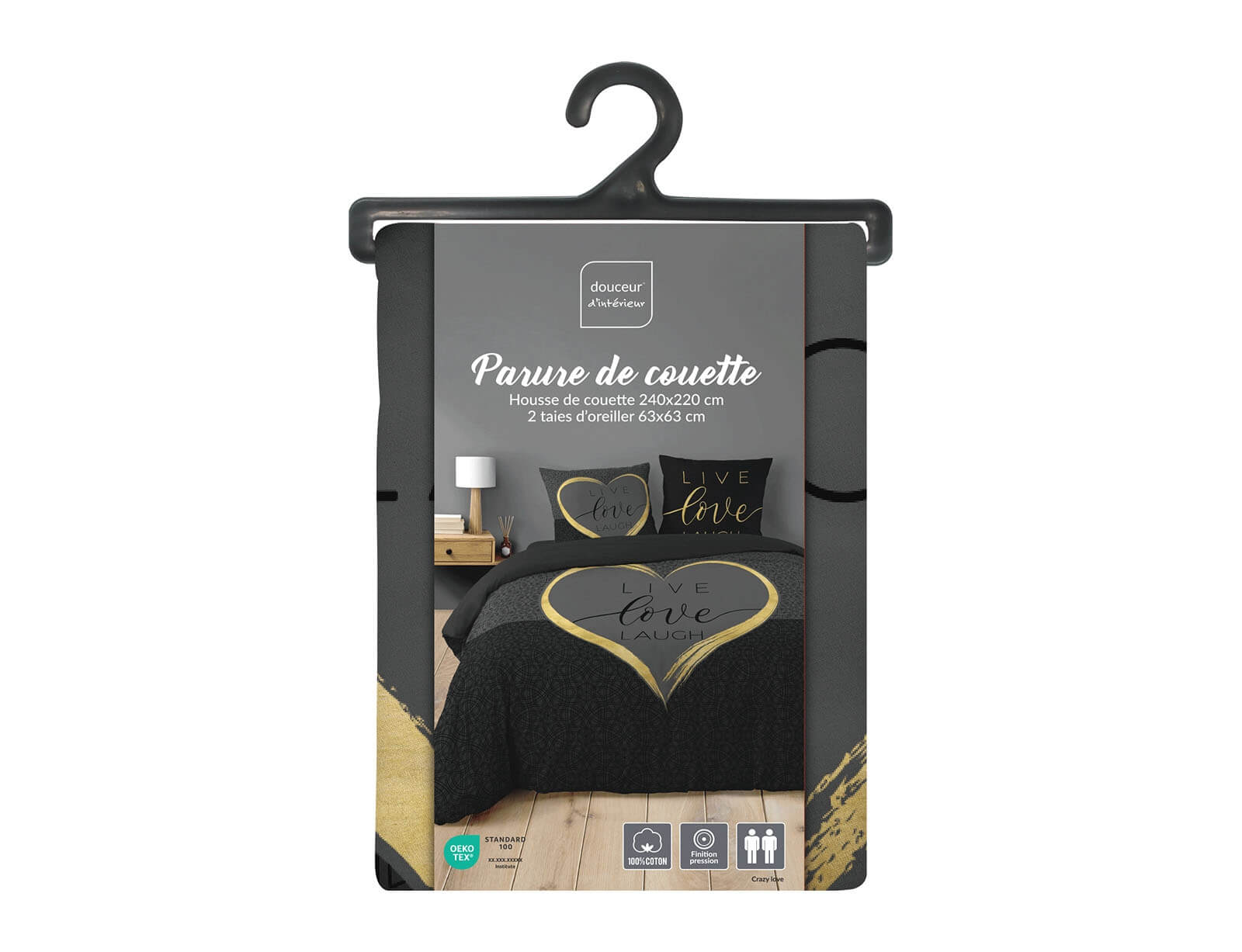 Σετ Υπέρδιπλη Παπλωματοθήκη & 2 Μαξιλαροθήκες Crazy Love Douceur d'intérieur από βαμβάκι 42TC, με διαστάσεις 220x240cm