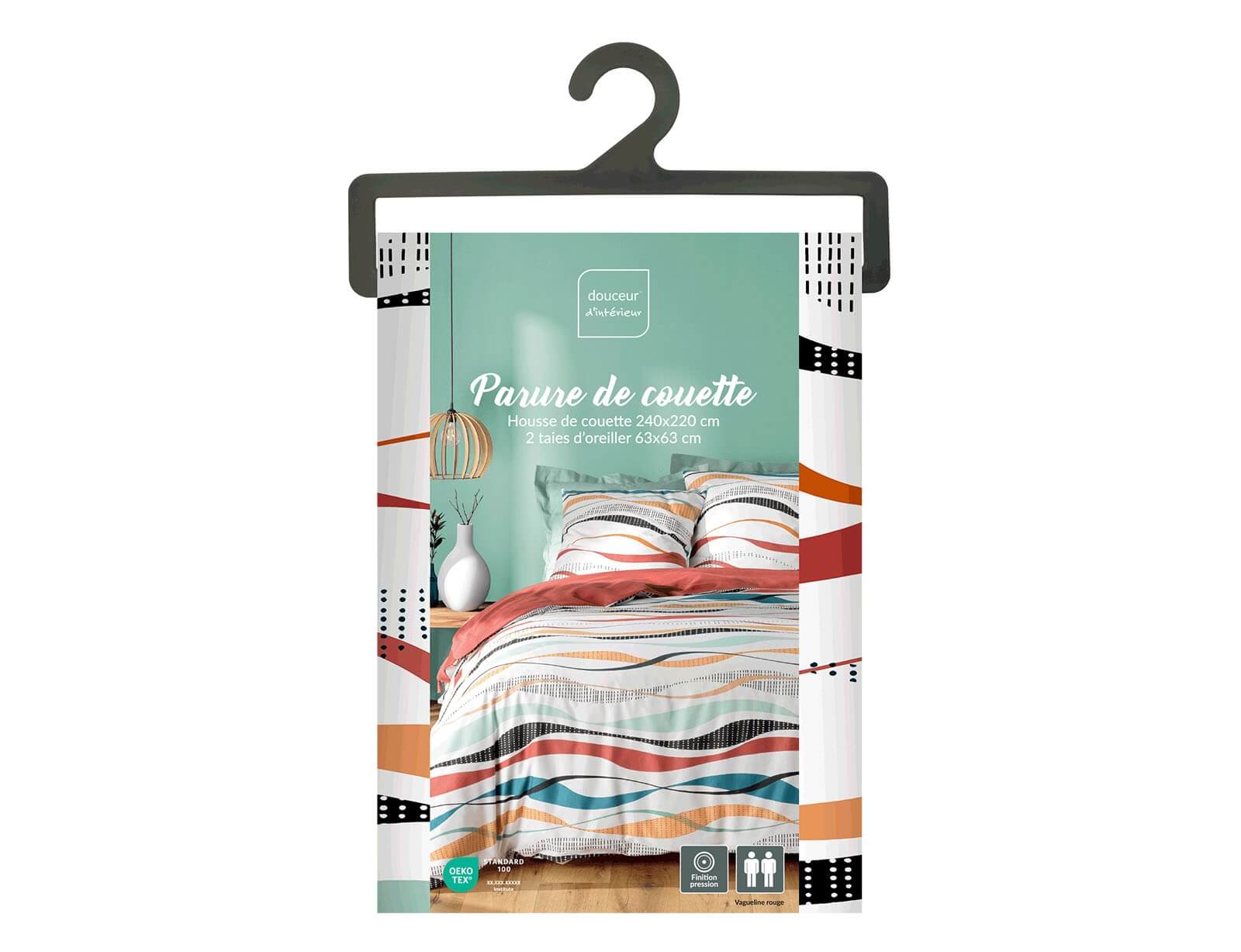 Ανανεώστε και δώστε χρώμα στο υπνοδωμάτιο με το σετ παπλωματοθήκης και μαξιλαροθήκης από τη Douceur d'intérieur. Κατασκευασμένο από 100% βαμβάκι 52TC, προσφέρει απαλή υφή και απαλή αίσθηση στο δέρμα σας, εξασφαλίζοντας έναν ήρεμο και ξεκούραστο ύπνο. Το βαμβάκι 52TC διασφαλίζει αντοχή και μακροχρόνια χρήση, χωρίς να χάνει τη ζωντάνια των χρωμάτων του.