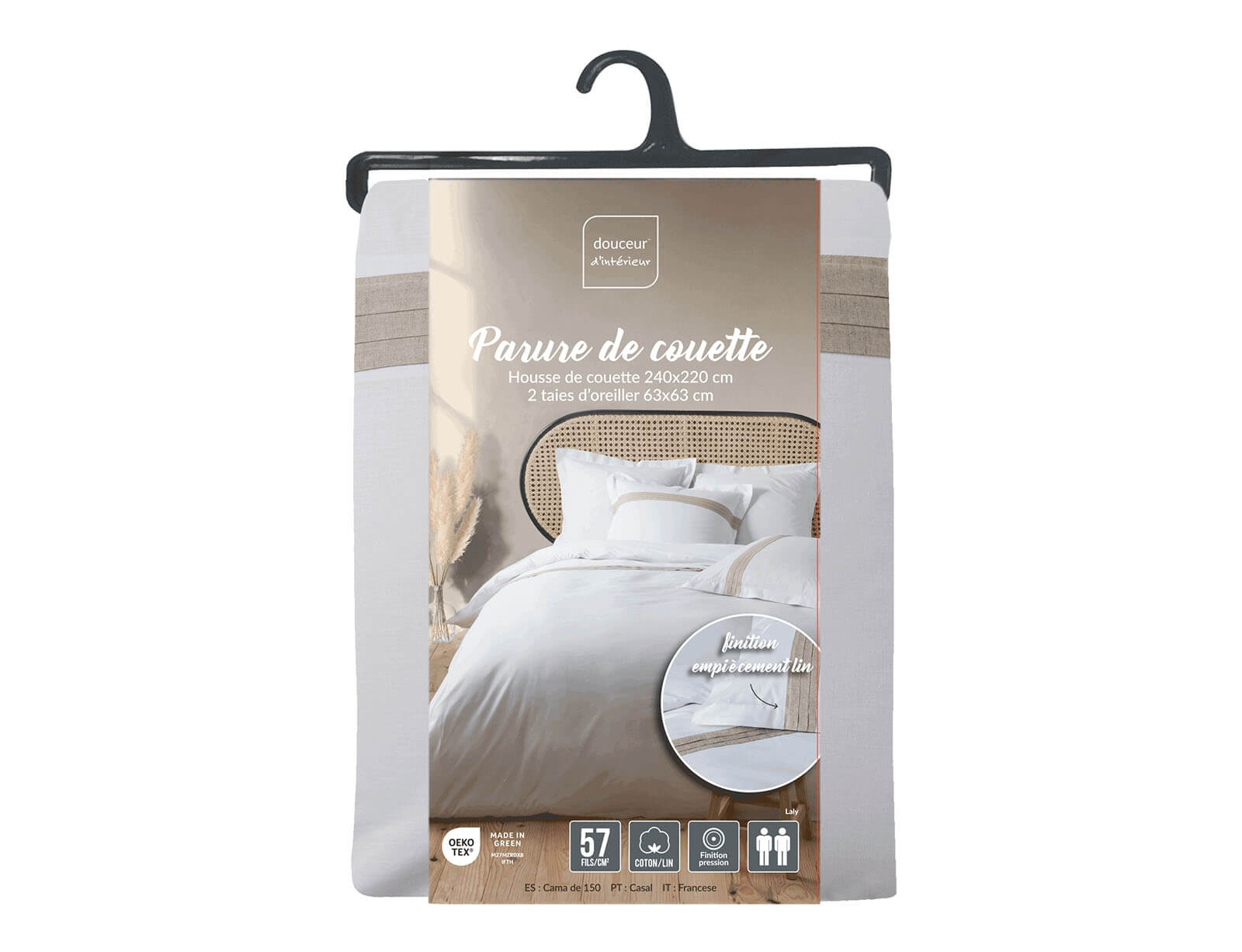 Σετ Υπέρδιπλη Παπλωματοθήκη & 2 Μαξιλαροθήκες Laly Douceur d'intérieur από βαμβάκι 57TC, με διαστάσεις 220x240cm